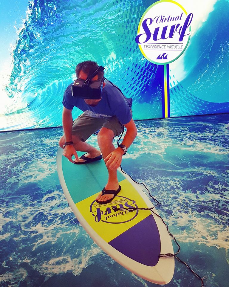 Mention spéciale pour l’animation, très prisée, qui permet de surfer des vagues virtuelles à grand renfort de lunettes de réalité virtuelle. On s’est pris au jeu, on a plié les genoux et chercher un équilibre sur cette planche. Des rires gentiment moqueurs arrivaient jusqu’à nos oreilles, qui nous firent comprendre qu’on était à fond dedans ! Notre score de 110 000 ( la moyenne est à 60 000) nous aura au moins permis de faire taire les moqueurs mentionnés ! Mais toujours dans un bon esprit !