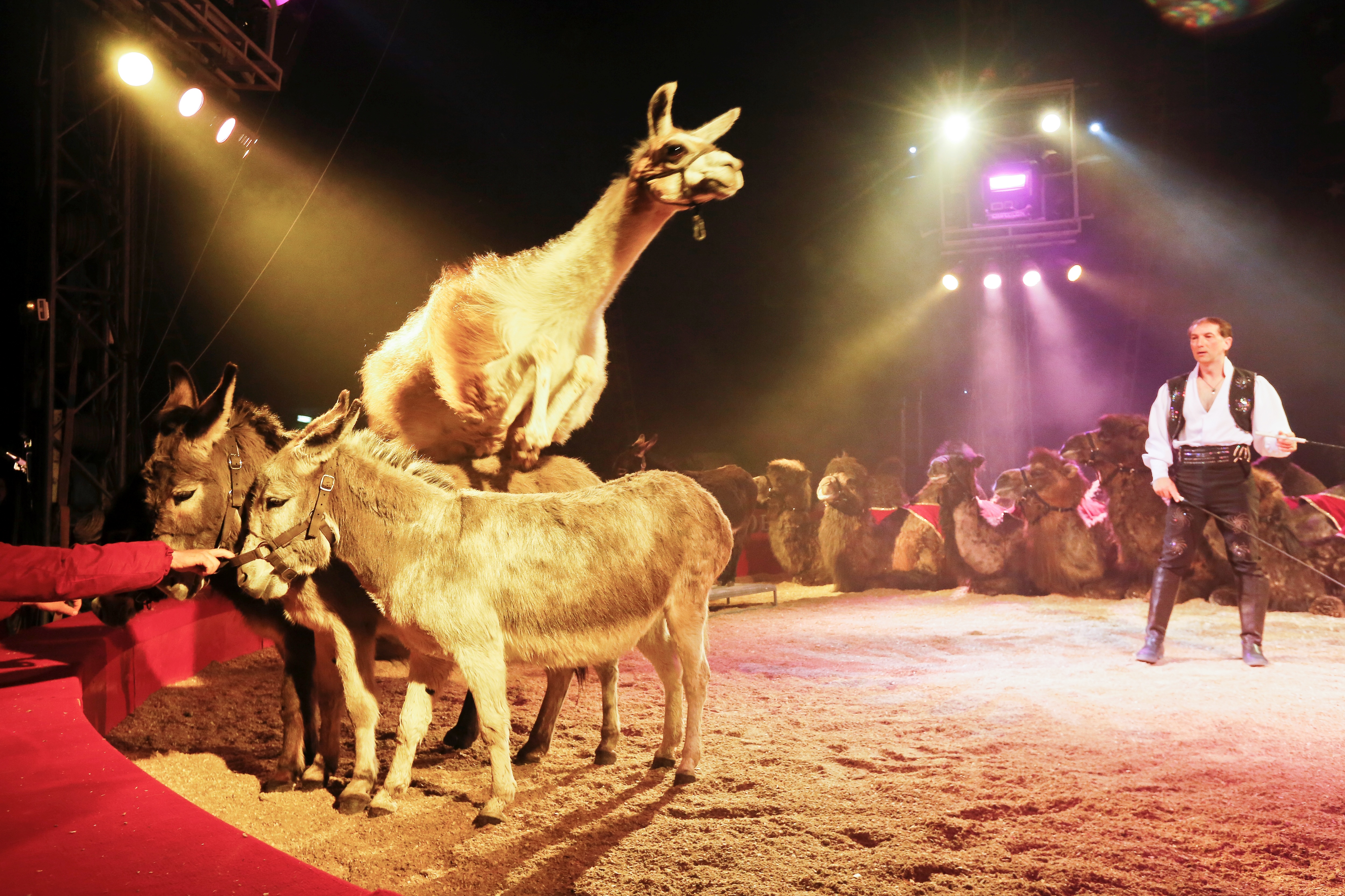Sur la piste du superbe écrin ( voir photo) , les plus grands artistes internationaux du moment se produisent autour de Frédéric Edelstein et de ses lions blancs, un numéro saisissant à chaque fois . On retrouvera également Sandro Montez l’un des plus grands dresseurs du monde. Los Diablos de las Pampas jonglent avec leur bolas sur un rythme endiablé. Au trapèze volant, les Flying Ferreira, des voltigeurs brésiliens époustouflants. Grace et élégance dans les airs avec Luana au ruban et Rosmery au cerceau. Fous rires garantis avec Los Anthony, un trio de clownsmusiciens. Les transformistes les plus rapides du monde, un numéro hallucinant et réjouissant.