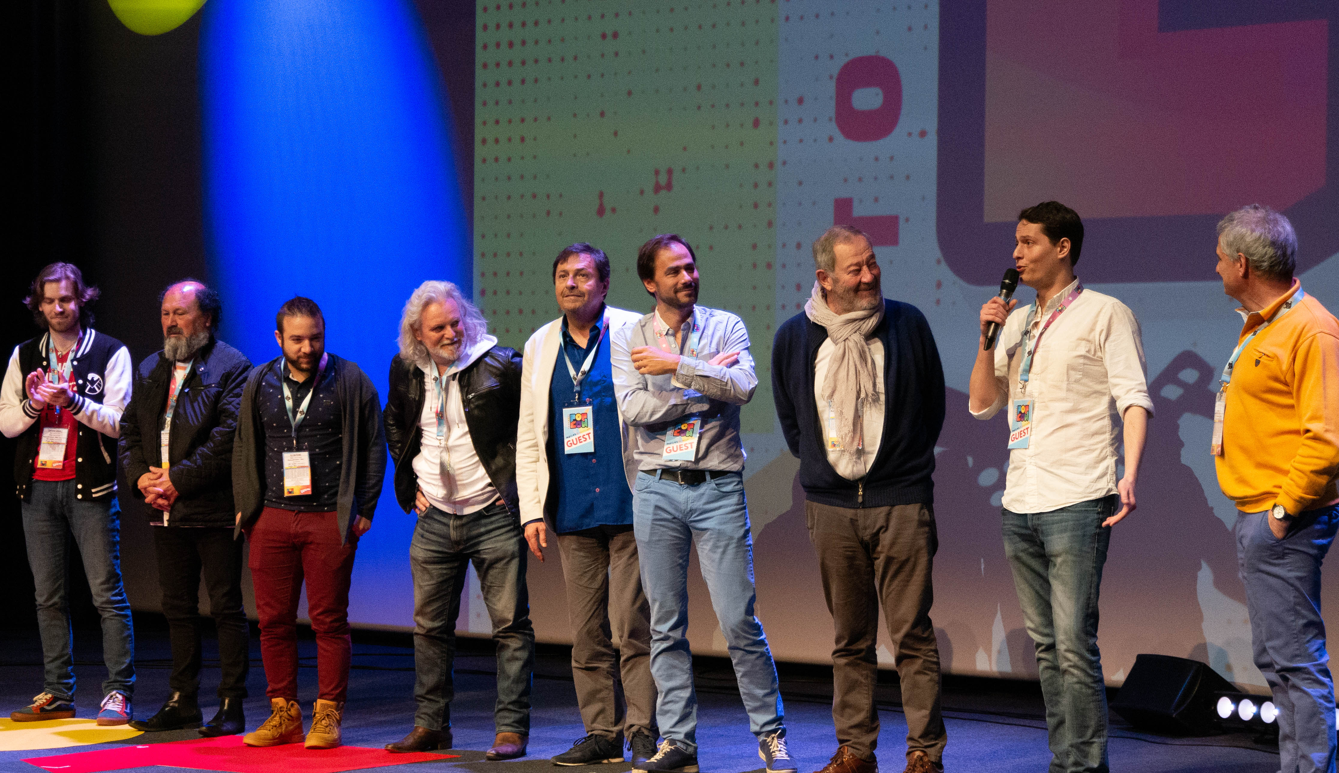 Puis vint la présentation des invités par Sébastien Laurens président de la société Calme Toi Organisation et l’instigateur du Popcon et du Festival Super Héros.