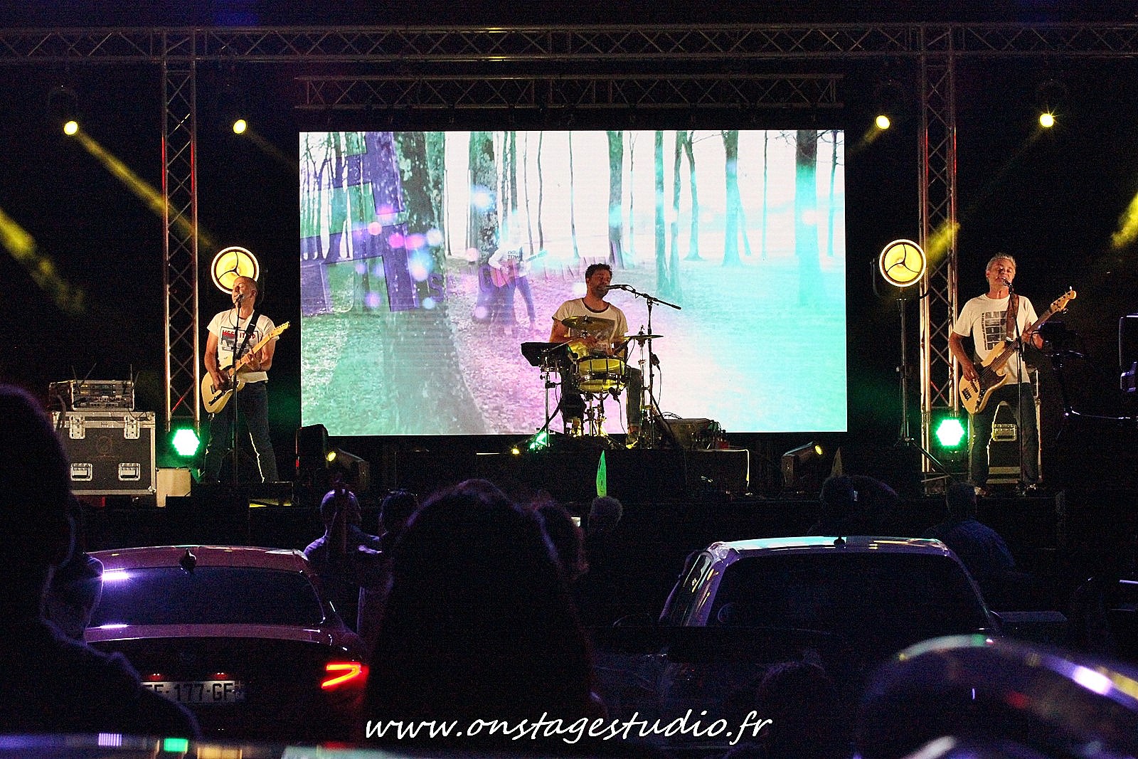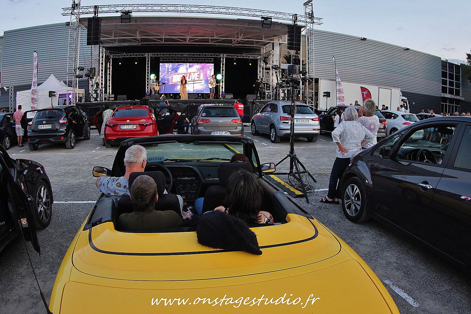 En allant à l’extérieur, nous prenons la mesure de l’événement et les conditions d’accueil et d’organisation pour faire rentrer 196 voitures face à la scène et les trois écrans géants.