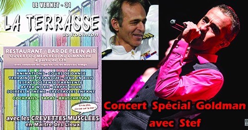 Soirée avec un grand monsieur de la chanson françaiseVendredi 14 août, à 19h30, Concert spécial Jean Jacques Goldman avec Steph. Stef vous donne rendez-vous afin de revivre tous les plus grands succès de ce Grand Monsieur de la Chanson Française.