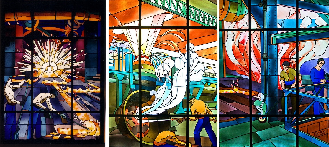 C’est vrai que c’est une belle formulation de la région toulousaine. Au début de notre entrevue, je disais que vous mettiez la nature en lumière mais il y a aussi les lieux. Je pense évidemment aux vitraux Majorelle dans les locaux de l’ancien siège des Aciéries de Longwy. On le disait tout à l’heure vous ne mettez pas de flashback mais ces vitraux font le lien entre le passé et le présent en montrant la dureté et les dangers d’une aciérie.