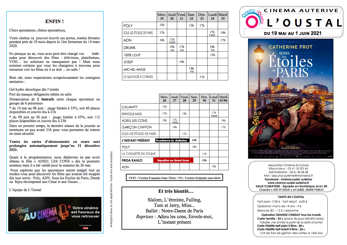 Ce samedi 29 mai à 15h, le cinéma L’Oustal à Auterive (31) reçoit le réalisateur Florian Hessique pour l’avant-première de « L’Instant présent ». La séance sera suivie d’un débat avec le réalisateur. Rappelons que la jauge est toujours limitée et qu’il n’y aura que 60 places disponibles. N’hésitez pas à réserver la vôtre.