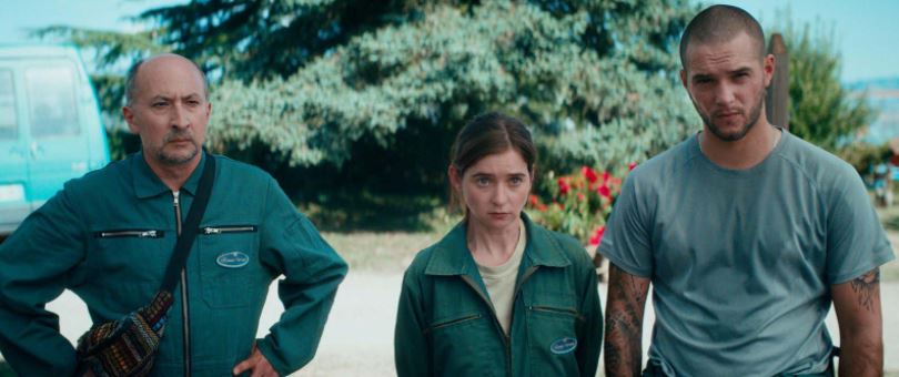 Elle est entourée de trois employés en réinsertion interprétés par Fatsah Bouyahmed, Marie Petiot et Mélan Omerta.