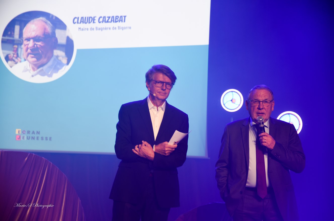 Monsieur Marc Du Pontavice a reçu un prix d’honneur des mains de Claude Cazabat, Maire de Bagnères-de-Bigorre pour son travail de producteur et président de Xilam Animation.