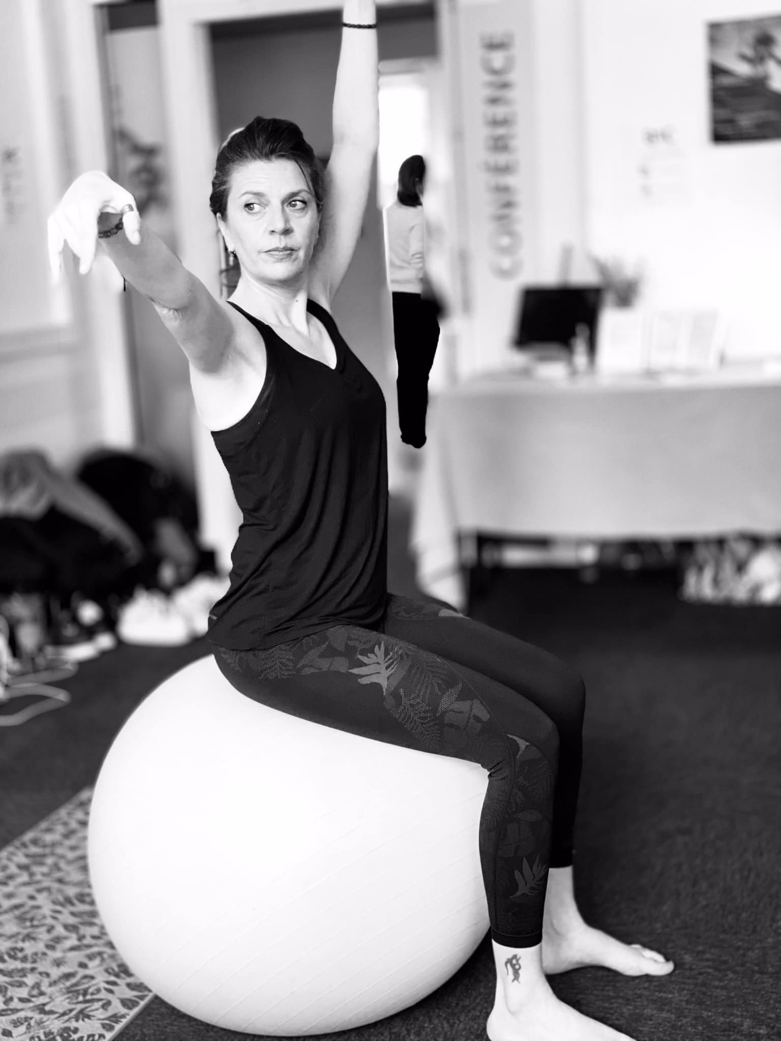 Notre institutrice Postural Ball, Marie-Pierre nous présente la pratique du postural Ball avant d’attaquer la séance. C’est une activité sport santé bien-être fluide qui se pratique avec un gros ballon appelé swiss ball. On doit cette méthode à Nadine Garçia, coach sportive et professeur de fitness et de bien-être depuis 1994. Elle a été jury au Creps et à l’Université Paul Sabatier de Toulouse.