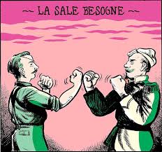 Le bd-concert La Sale Besogne nous plonge dans des histoires d’affrontements, de bagarres, de torses bombés, de lâchetés et de courages, avec larmes et rictus en tous genres. D’une provocation initiale (un crachat sur une chaussure, deux personnages qui se dévisagent, une partie de cartes…) la situation dégénère, le spectre de la bagarre générale fait son apparition. Sur scène, la musique s’électrise ou se fait vaporeuse, naviguant entre rock et folk, bruitisme et opéra. À travers La Sale Besogne, on peut distinguer les recoins de l’être humain : la revanche, la tristesse, l’ivresse et une mystérieuse solidarité : celle du tour de table où s’échange les récits de nos aventures. L’euphorie et l’empathie nourriront ce moment. À la manière d’un ciné-concert, des épisodes d’affrontements (créés pour le spectacle par Edmond Baudoin, Jean-Luc Navette, Christoph Mueller, Jonathan Munoz, Le Grilleur) défilent sous nos yeux et un dialogue s’établit entre les bandes-dessinées, la musique de Le Skeleton Band (jouée sur scène) et les spectateurs. La Sale Besogne oscille entre spectaculaire et intime, désirant révéler l’envers des coups. Les personnalités, les styles graphiques et les genres musicaux se confrontent pour mieux explorer le thème de l’affrontement et notre rapport à celui-ci, et pour laisser l’imagination des spectateurs se déployer.