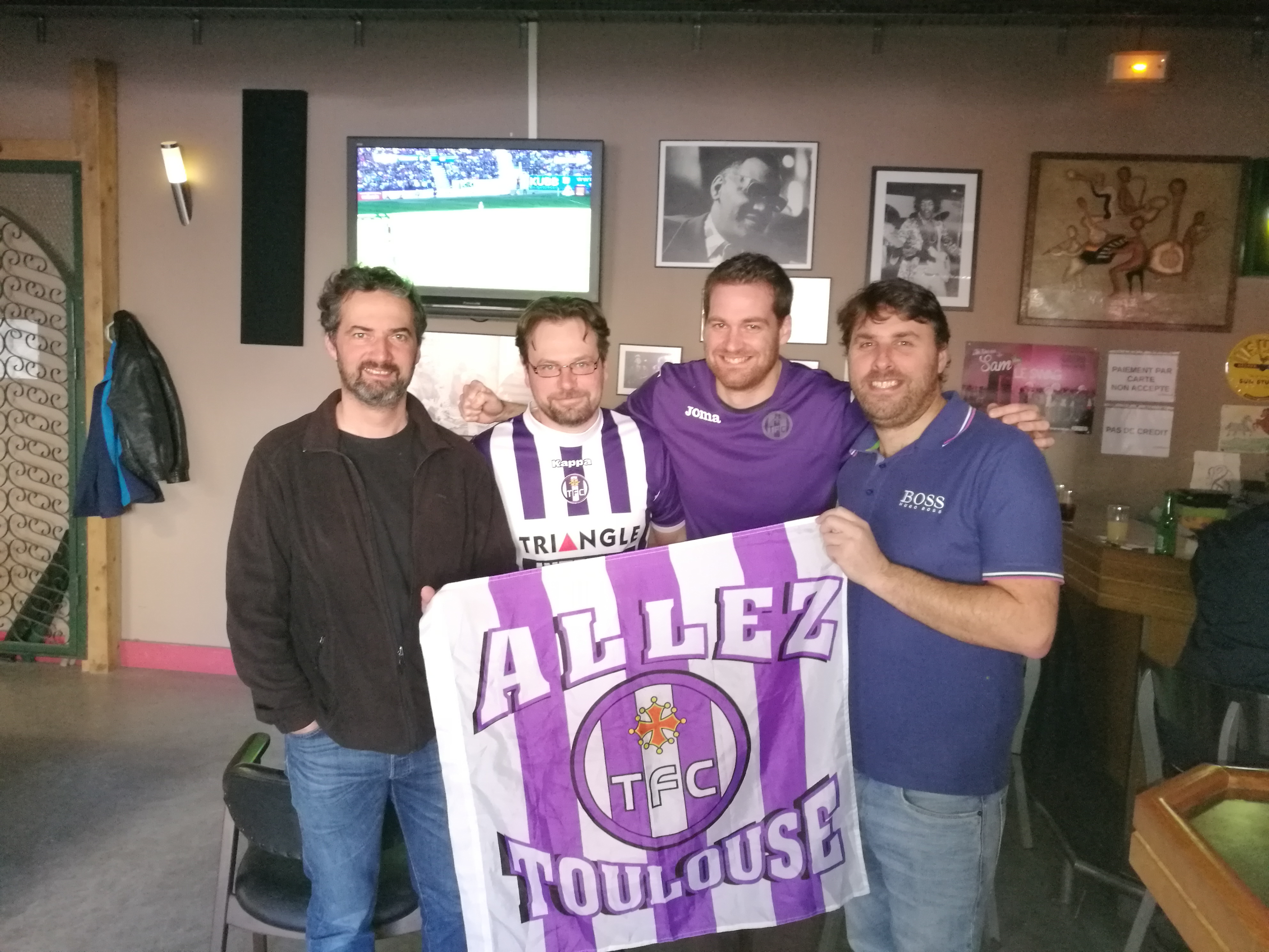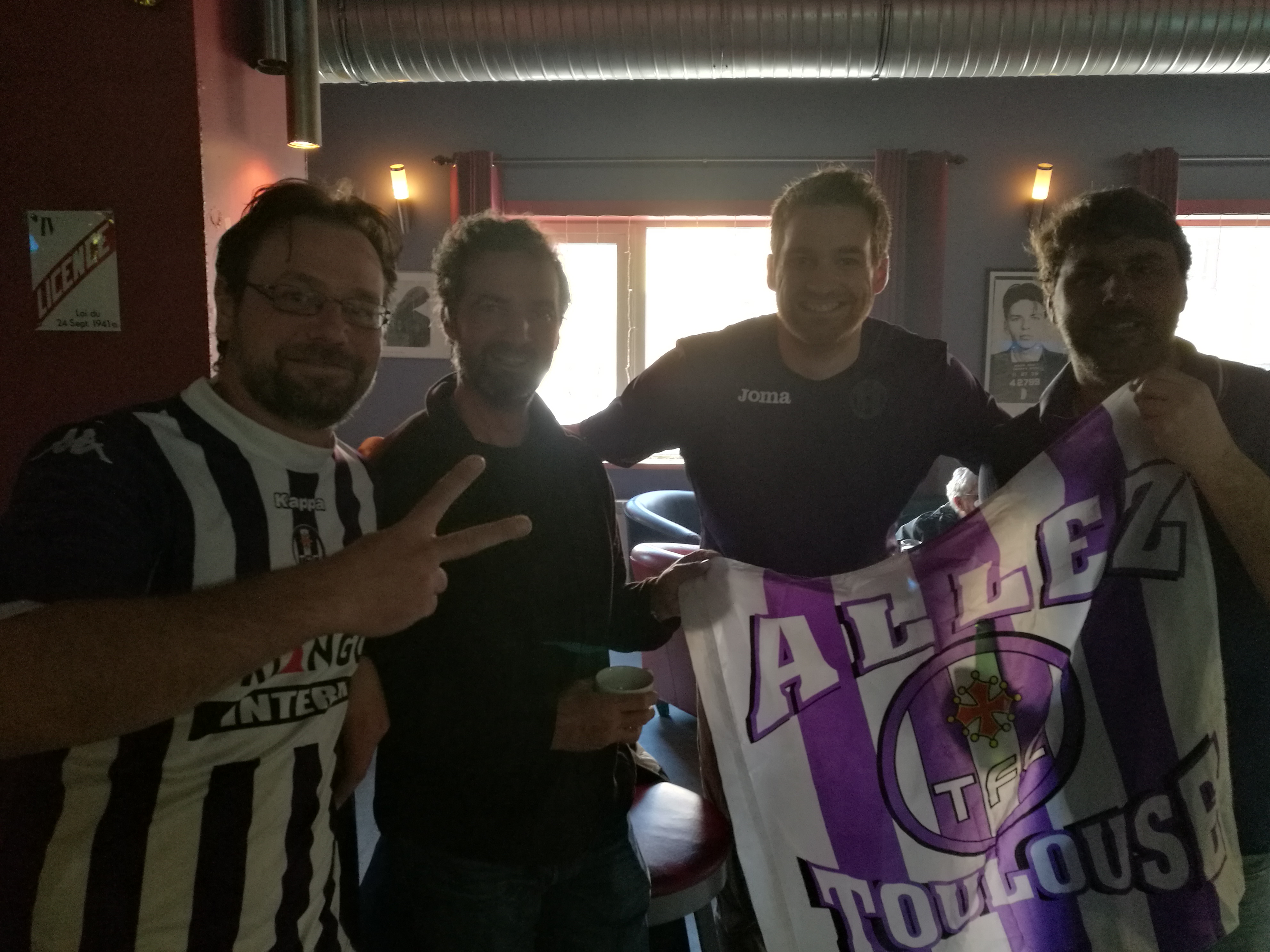 Olivier : pour ceux qui s’échoueraient sur notre caillou nord-américain, le RV est un peu avant 11h du matin au bar “Le Baratin” où les matchs de championnat sont diffusés en direct, le décalage horaire étant de 4 heures avec la métropole. Nous serons plusieurs à venir avec un maillot violet, mais hélas pas encore de maillot vintage à lacet, que je commanderai quand même au père Noël…