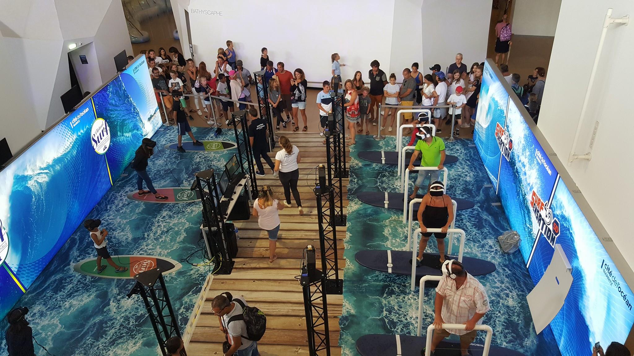 Mention spéciale pour l’animation, très prisée, qui permet de surfer des vagues virtuelles à grand renfort de lunettes de réalité virtuelle. On s’est pris au jeu, on a plié les genoux et chercher un équilibre sur cette planche. Des rires gentiment moqueurs arrivaient jusqu’à nos oreilles, qui nous firent comprendre qu’on était à fond dedans ! Notre score de 110 000 ( la moyenne est à 60 000) nous aura au moins permis de faire taire les moqueurs mentionnés ! Mais toujours dans un bon esprit !