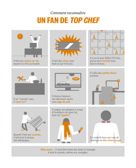 Sur la base d’un modèle récurrent, 9 petites vignettes brillamment et sommairement illustrées par Charlotte Lamoglia, et des textes pertinents et drôles de Maxime Chamoux et Sylvain Gouverneur on saura désormais reconnaître , entre autres :