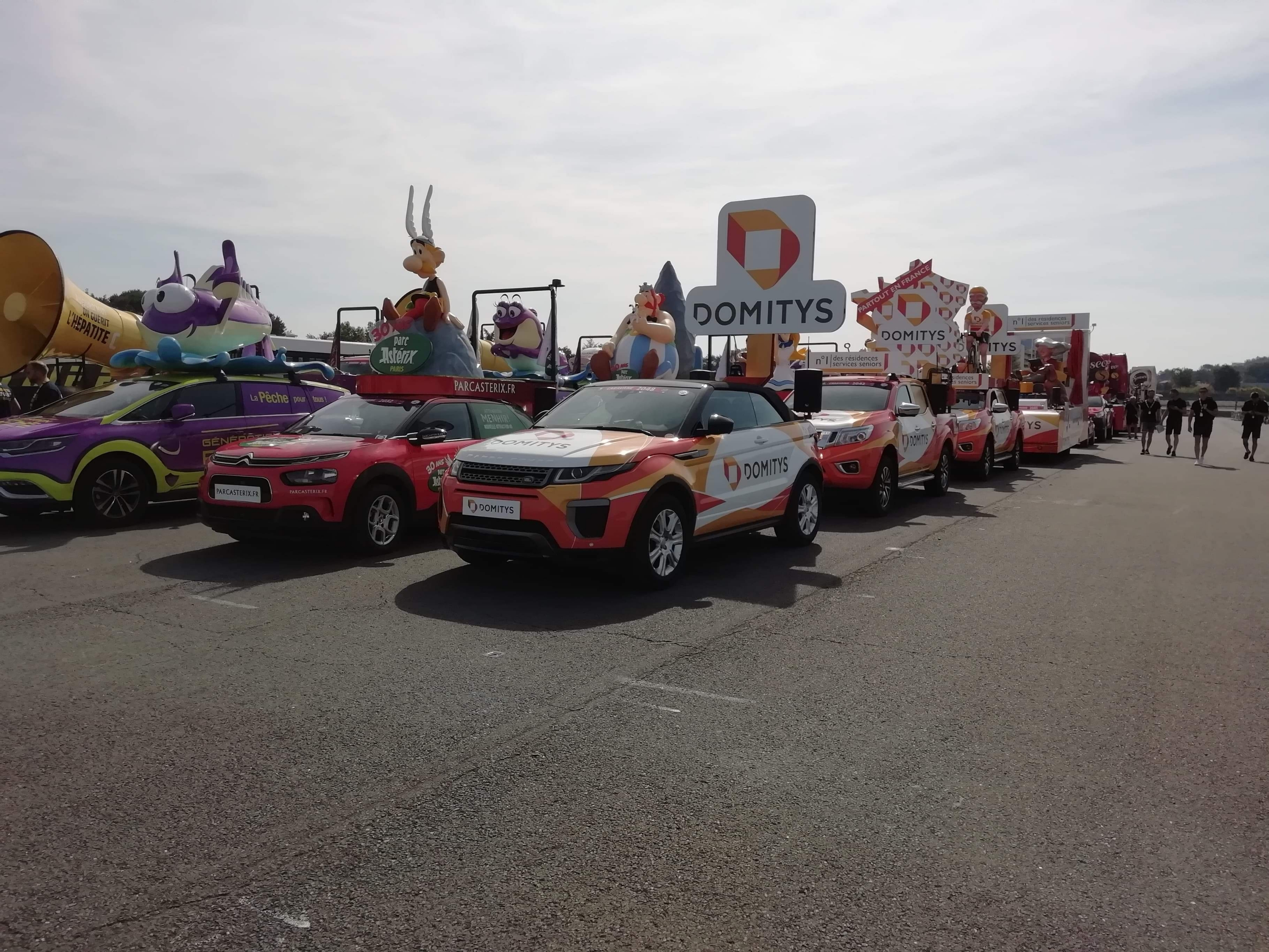 Au coeur de l’emblématique Caravane publicitaire avec ses quatre véhicules, Domitys sillonne les routes de Belgique et de France depuis le 6 juillet et ce jusqu’au 28 juillet 2019. Un parcours de plus de 3 460km. Ce sont au total 400 000 goodies qui seront distribués au spectateurs.