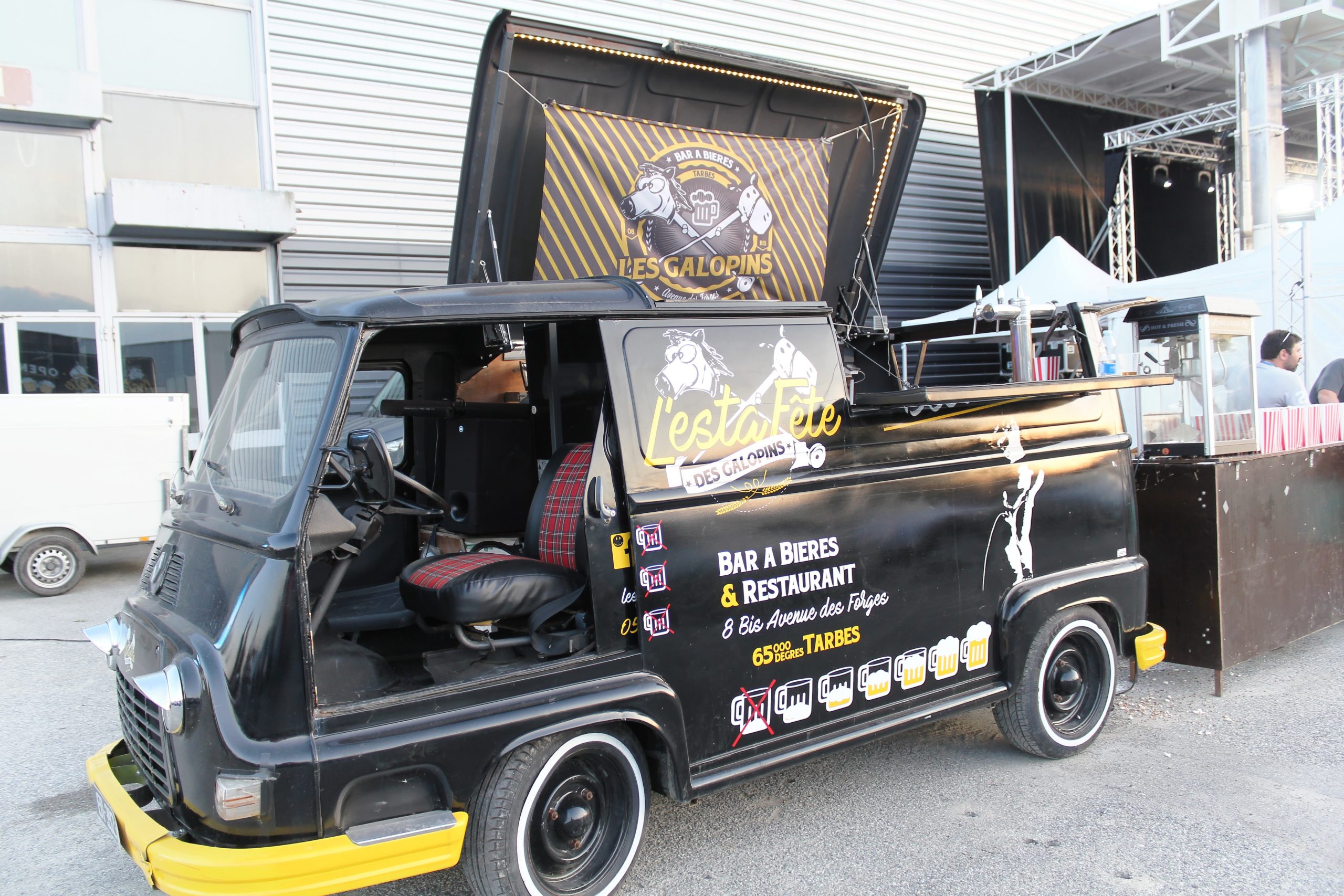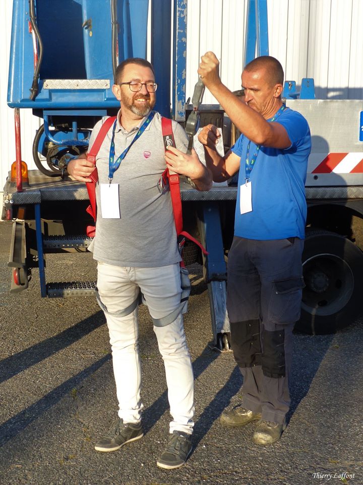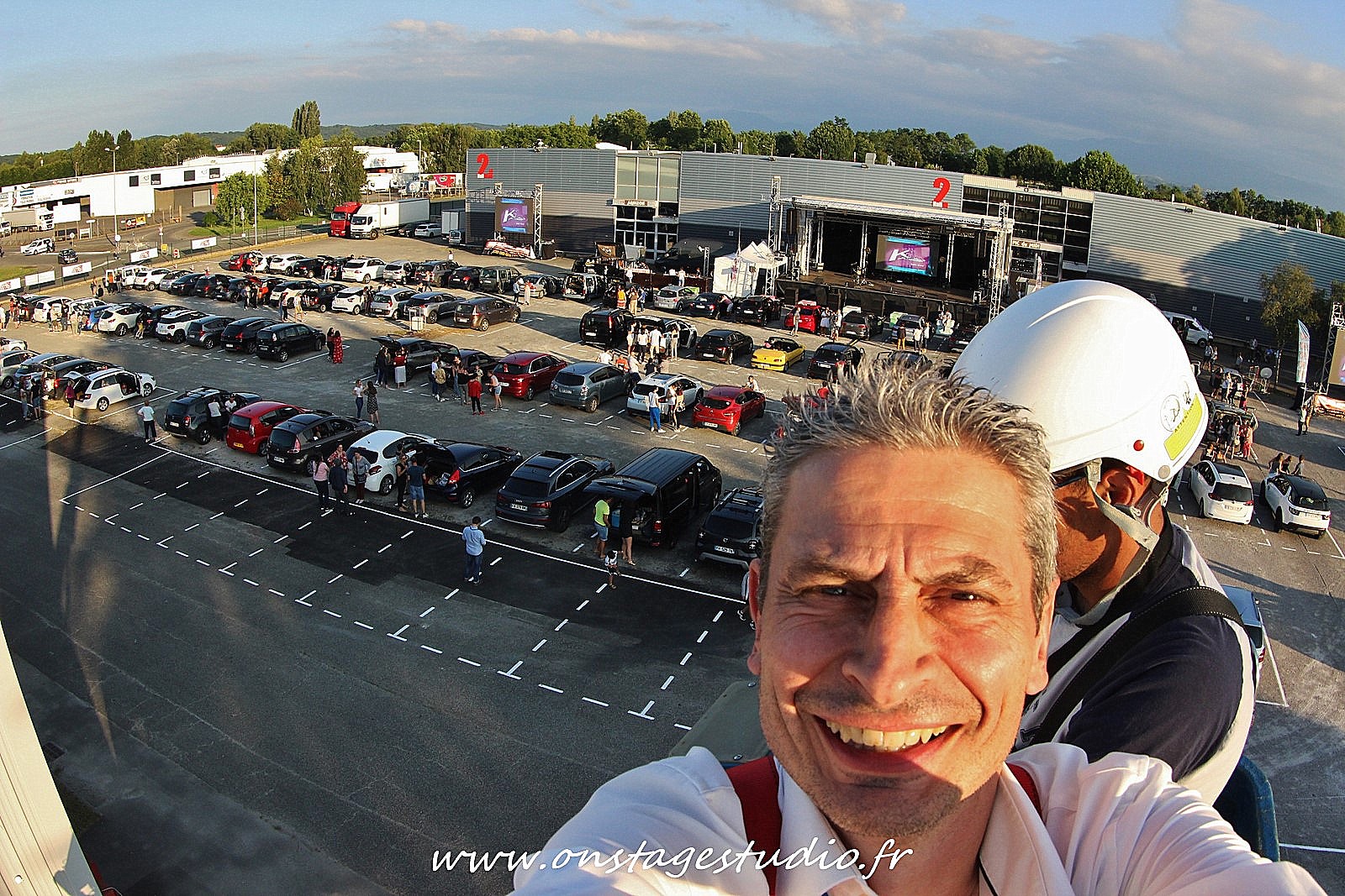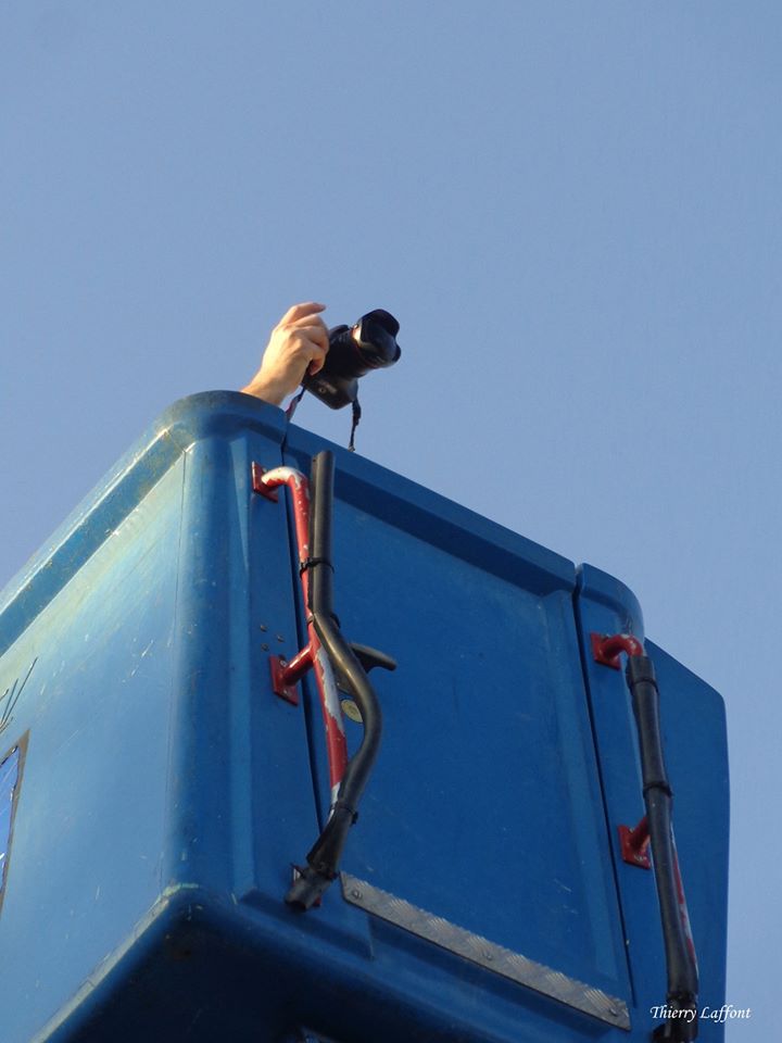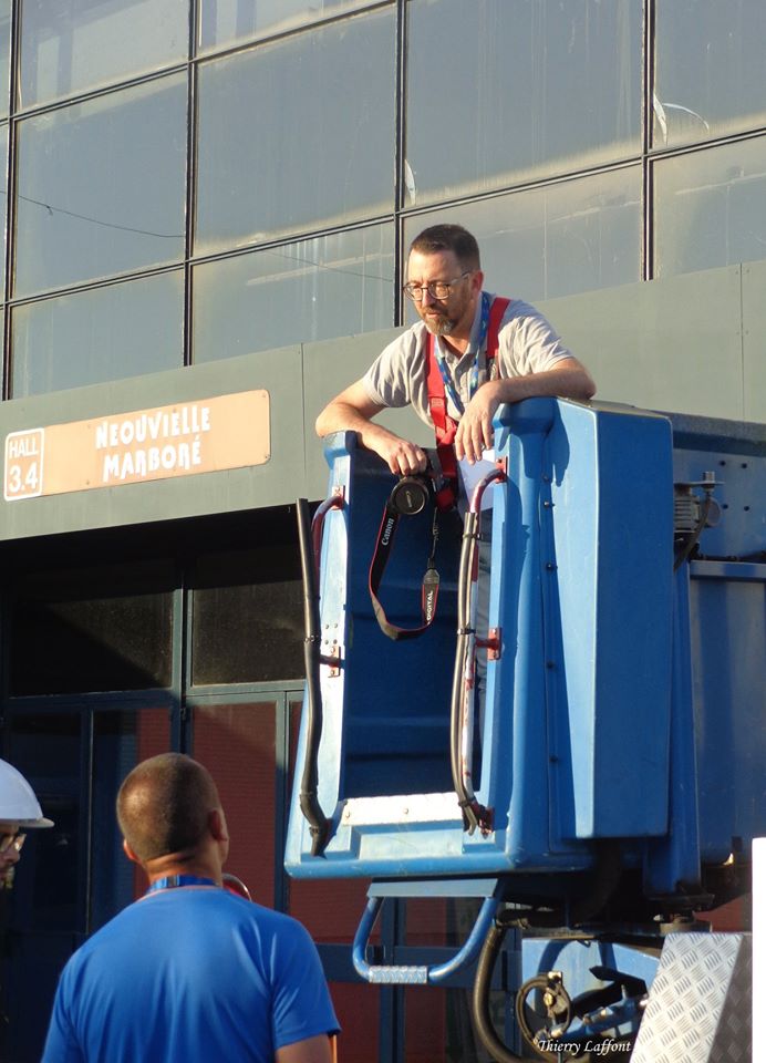 Avant que le concert commence nous nous promenons dans les allées des véhicules et nous croisons notre photographe qui prend de la hauteur dans une nacelle pour faire des prises de vues d’ensemble.