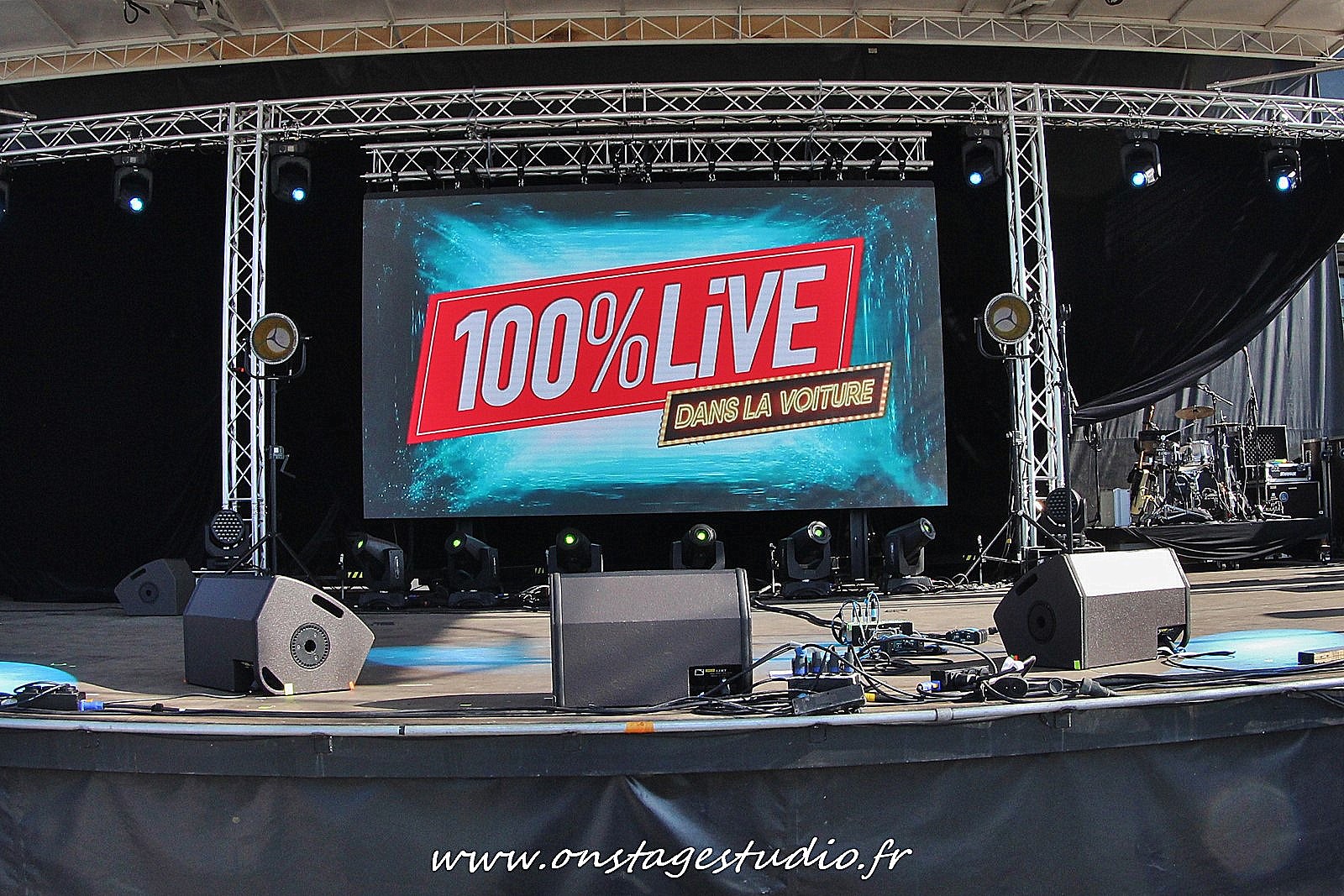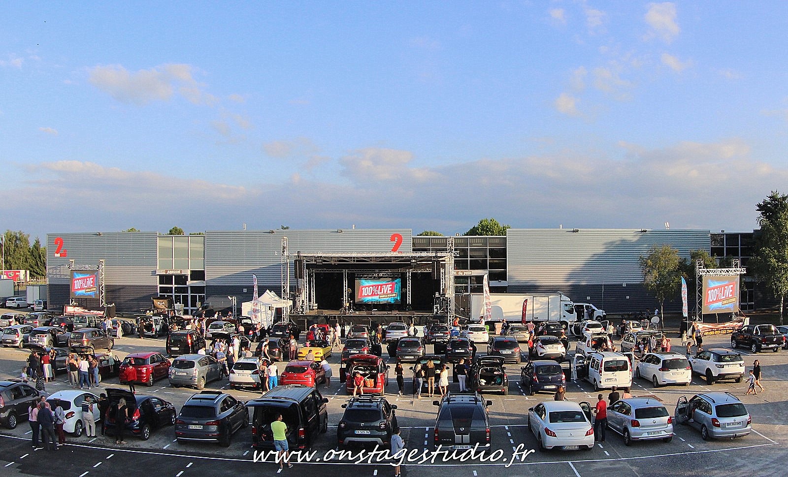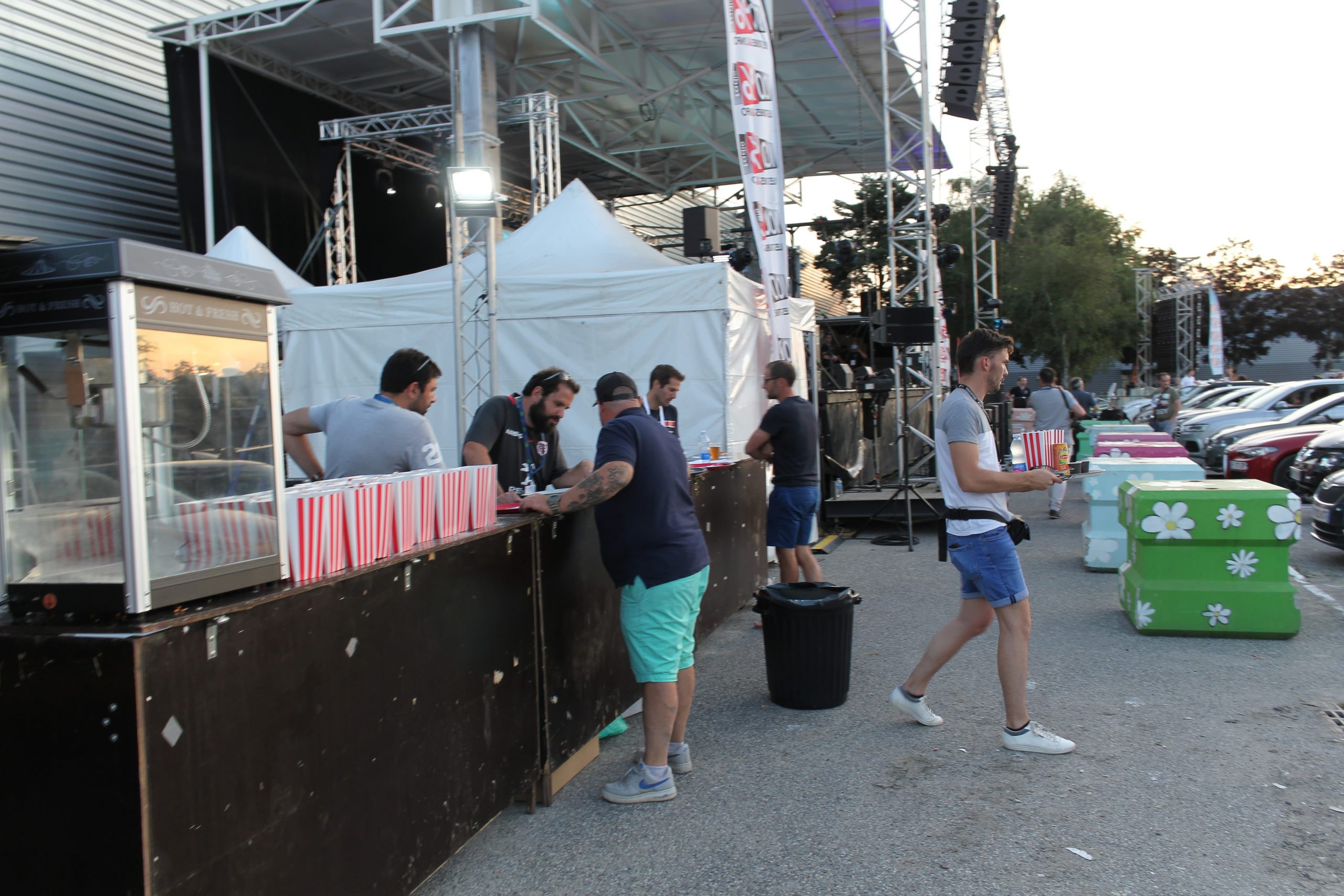 En allant à l’extérieur, nous prenons la mesure de l’événement et les conditions d’accueil et d’organisation pour faire rentrer 196 voitures face à la scène et les trois écrans géants.