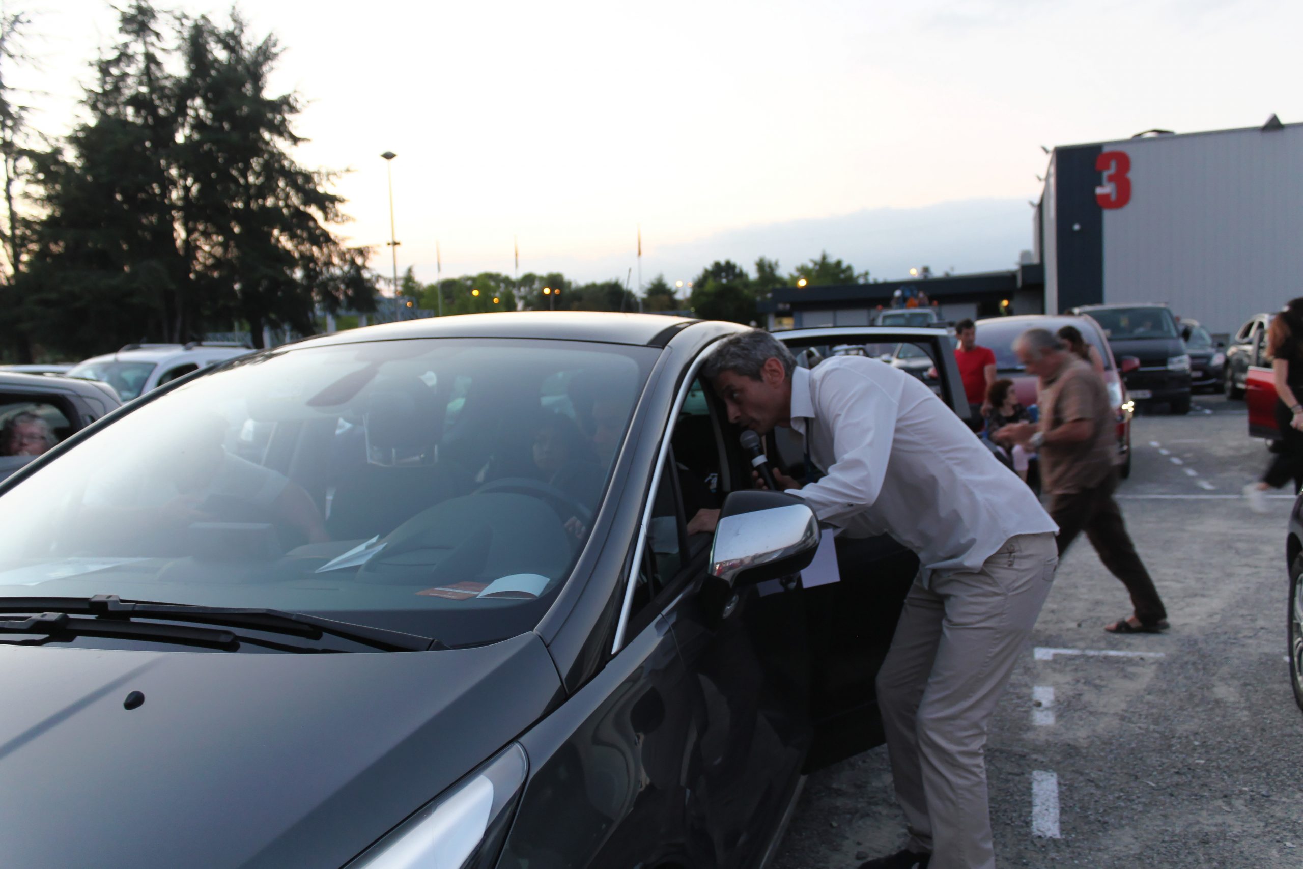Dernier petit tour dans le public de Wilfried pour prendre la température. Les gens sont sortis de leur véhicules et attendent le dernier groupe.