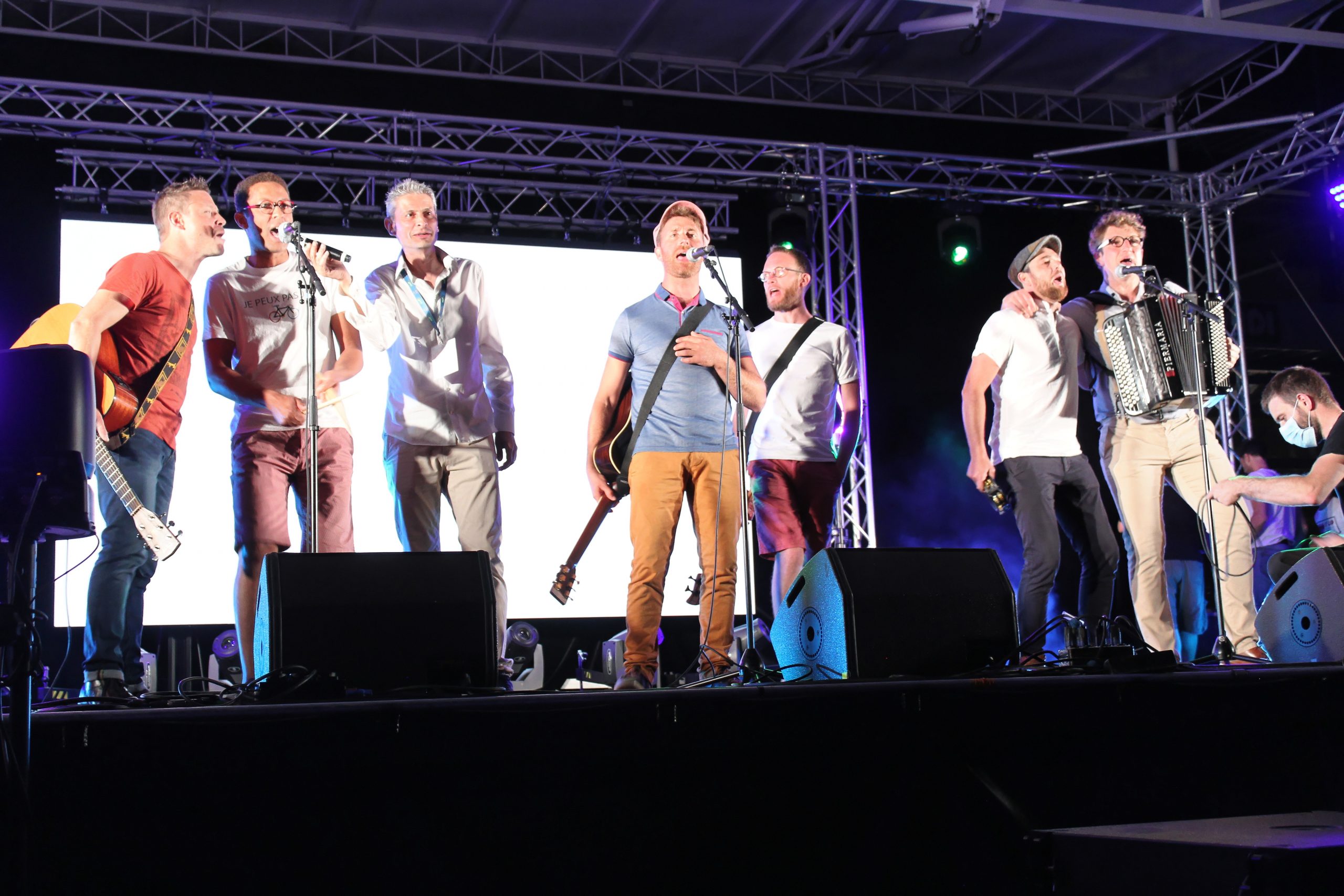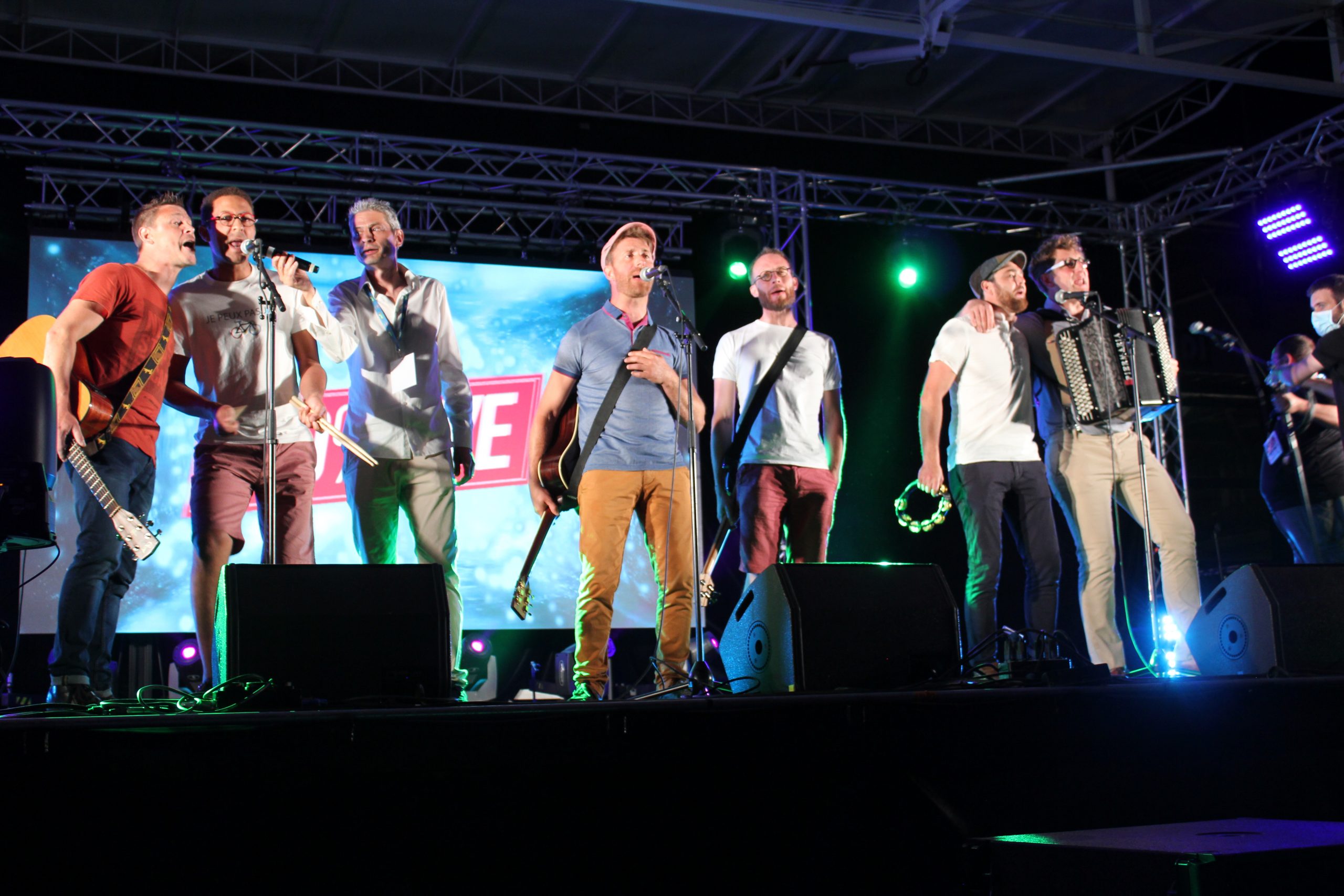 Et Wilfried tout comme le public en redemandent alors Yohann, Cyril, Nicolas, Alexis, Valentin et Fabrice du groupe reprennent un petit bout du refrain de leur chanson A cappella.