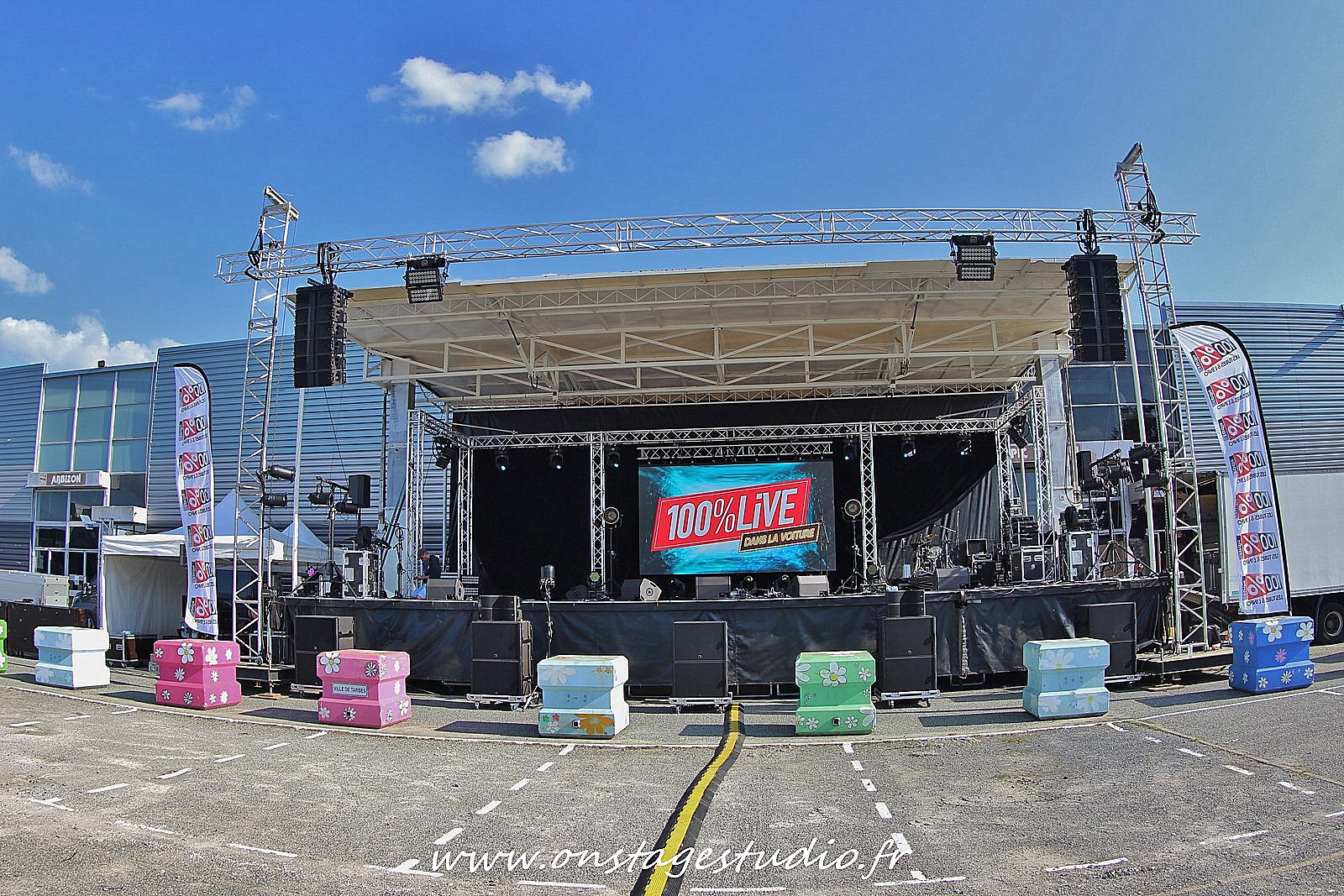 Ce dimanche 21 juin nous avons fêté la fête de la musique à Tarbes en mode concert “Drive in”. Il a été mis en place par l’équipe de Tarbes Animations avec la radio 100% et trois prestataires : Deelite Evénements, Kelan Production et Chloé Production.