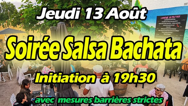 Danse en duoJeudi 13 août, à 19h, initiation Salsa et Bachata avec Julien Weys. Les mesures mises en place contre la Covid-19 sont scrupuleusement respectées.