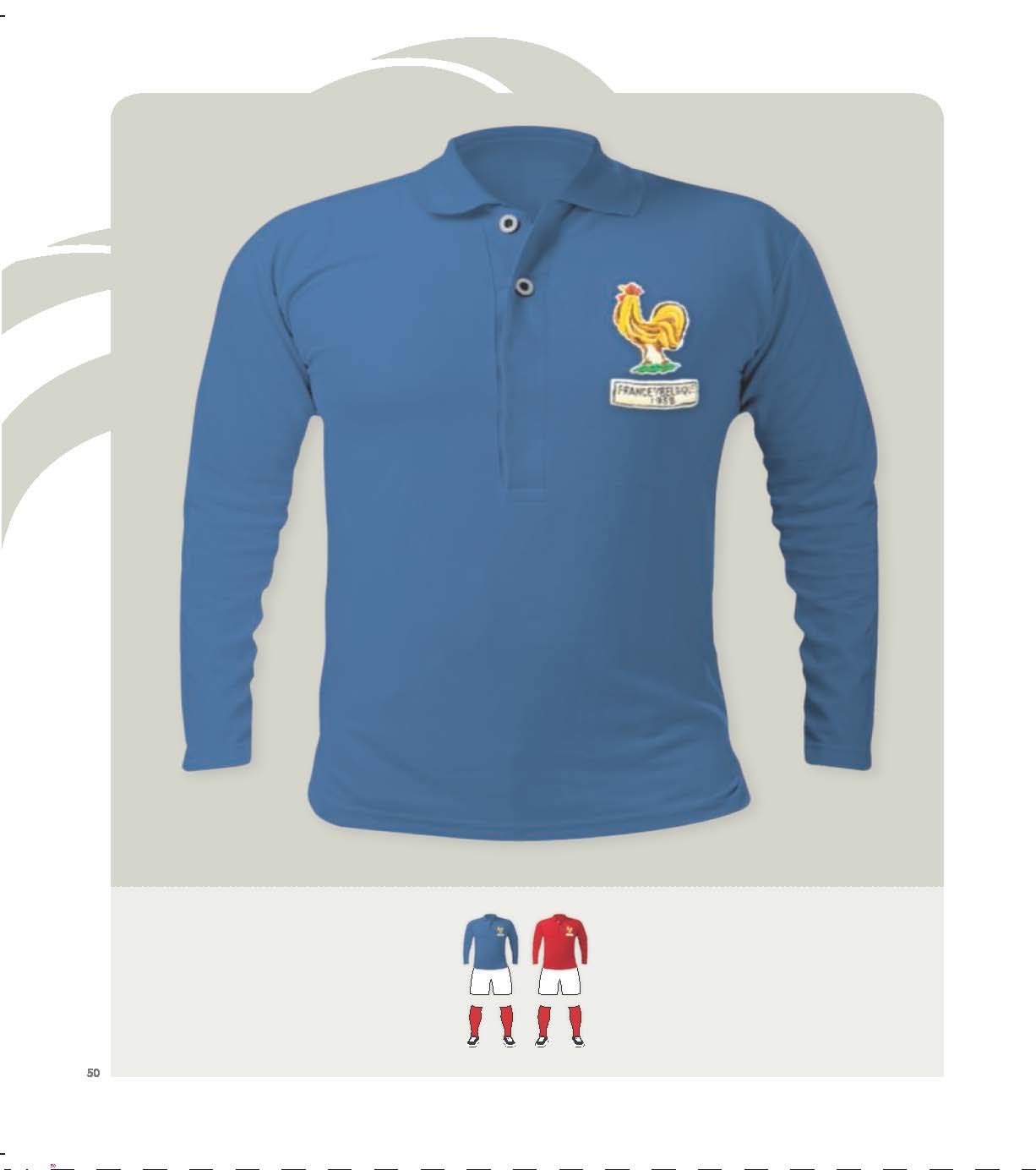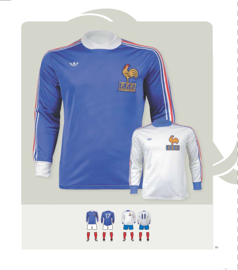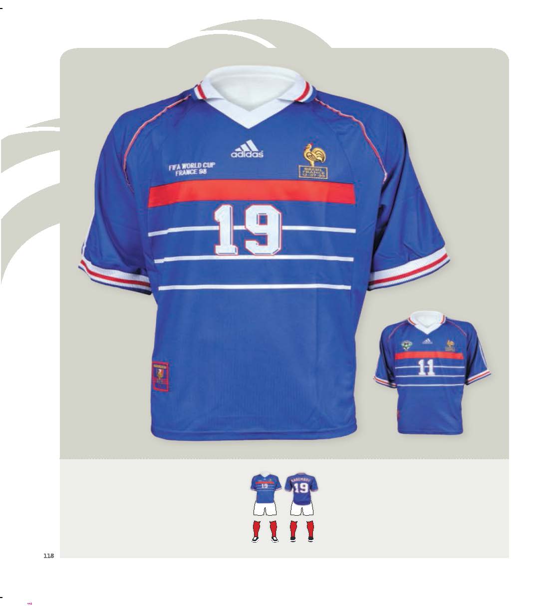 Chaque maillot aura sa double page décrivant la matière, les couleurs, les symboles y figurant. On y retrouvera ainsi le “palmarès” de chaque tunique ( nombre de matches disputés, gagnés, nuls, perdus) . Le blanc a col bleu et rouge porté entre 2003 et 2005 sera ainsi un des seuls à n’avoir connu que des victoires ( 4) comme son homologue de 90-91 qui compte lui 6 victoires.