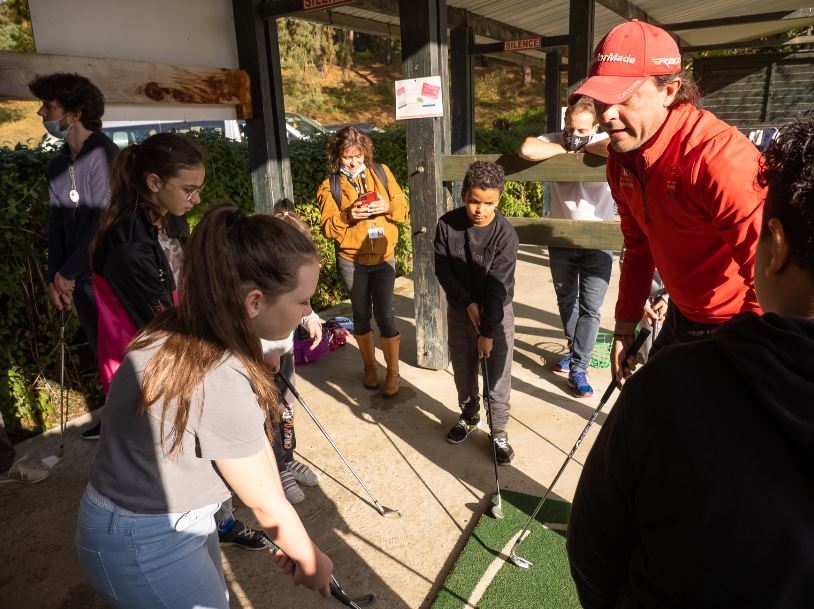En fait ils viennent découvrir quelque chose. Notamment pour les deux jours qu’on a passé ici au golf de Lourdes avec cette initiation golfique. Ils ne savent pas trop quand on les voit arriver ils se disent : “Mais qu’est-ce que c’est que ça ? On ne sait pas trop ce qu’on va faire. Qu’est-ce que c’est que le golf” ? Un peu comme nous d’ailleurs quand on a commencé le golf (rires collégiaux). On pensait que c’était un sport de vieux, mais en fait pas du tout ! Là on passe une heure avec eux au practice et après on va aller faire le trou numéro 18.