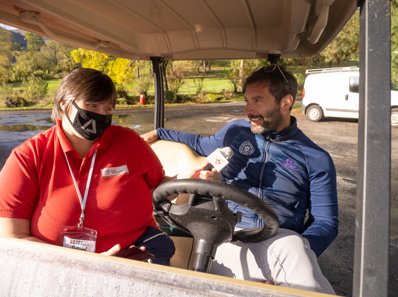 C’est dans une petite voiturette de golf que Franck Sémonin nous a accordé une entrevue très sympathique dans le partage et la bonne humeur.