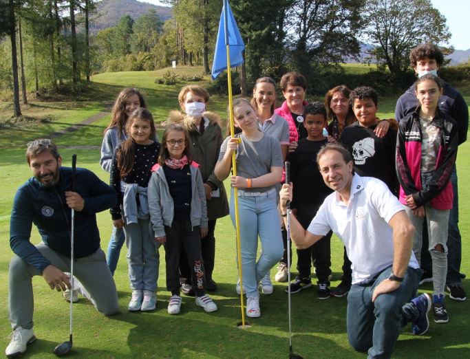 Tout à fait, c’est ça. Je suis comédienne et j’ai la chance d’être mariée avec le président fondateur de l’association “Les Balles Blanches”. Raison pour laquelle nous sommes ici au golf où nous offrons une initiation à des enfants défavorisés.