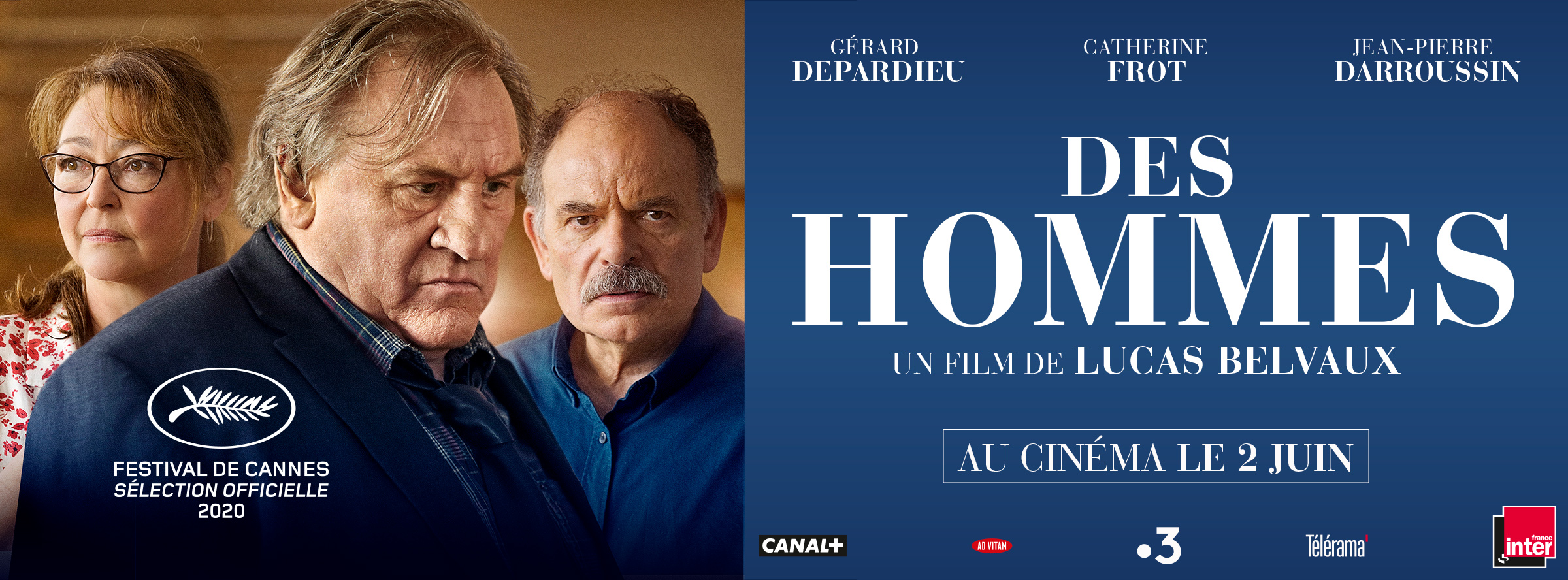 Depuis ce mercredi 02 juin 2021 le film « Des Hommes » de Lucas Belvaux avec Gérard Depardieu, Catherine Frot et Jean-Pierre Darroussin est sorti au cinéma. A Toulouse vous pouvez le voir au Gaumont Toulouse Wilson, au Gaumont Toulouse Labège, à l’ABC, l’Utopia Tournefeuille, Le Véo Muret.