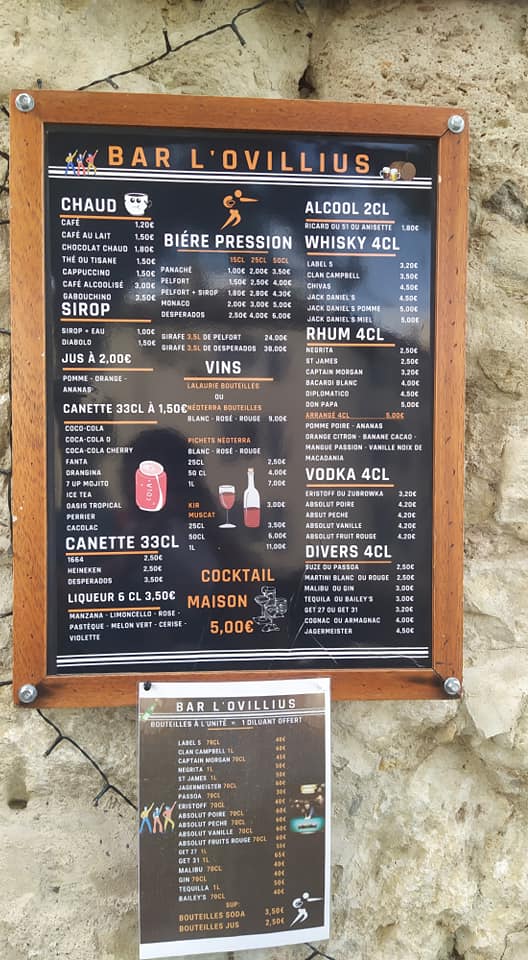 Renaud : A la base, nous ne faisions que restaurant. « Chez Loustic » c’est le surnom de mon père qui est décédé. C’est une manière de lui rendre hommage. Pendant le confinement et les restrictions sanitaires ont a dû fermer le restaurant. On a perdu le chef cuisinier, alors on a ouvert un bar comme il n’y en avait pas depuis 2 ans dans le village. Et puis « L’Ovillius » ça veut dire Ouveillan en latin.