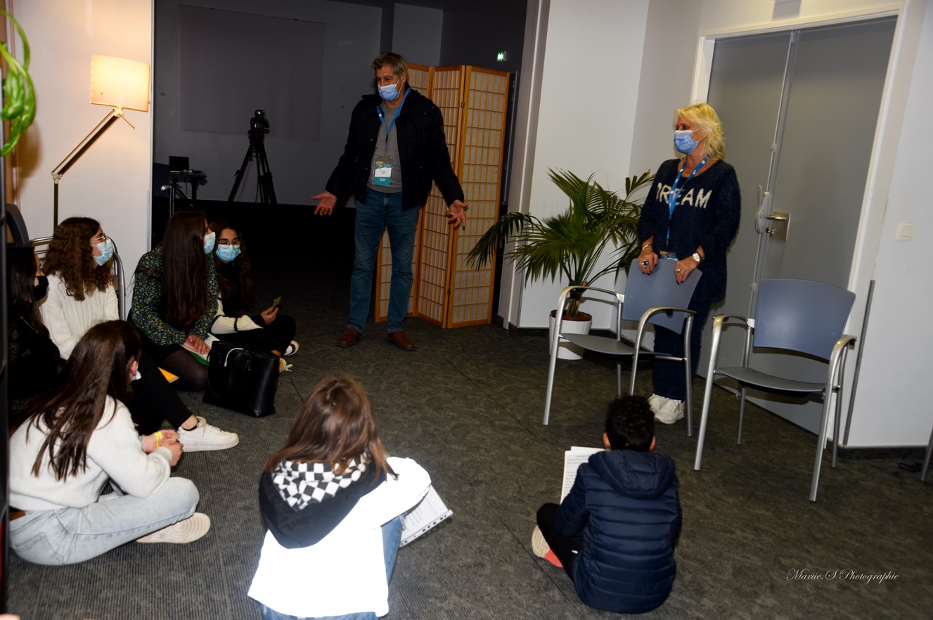 7 participants attendaient l’arrivée de Laurence Lustyk et Jean Philippe Bêche qui s’occupaient déjà l’année dernière de l’atelier. 3 filles ont d’ailleurs déjà participé à l’activité casting en 2020. Laurence a invité les jeunes à s’asseoir par terre et à se présenter.