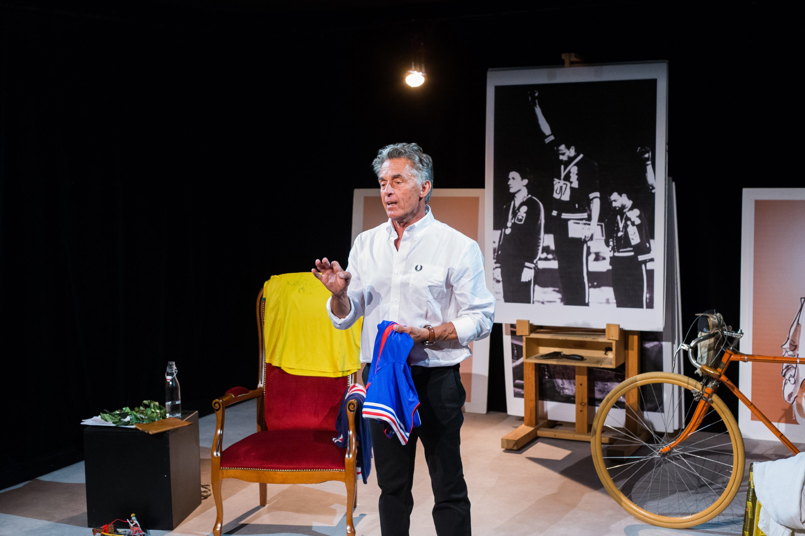 Oui absolument, d’autant que tout ce que je dis dans le spectacle est vrai et scrupuleusement vérifié! Donc j’ai relu mes notes, je suis un archiviste, des bouquins, des vidéos, me suis replongé dans des souvenirs personnels, pour coller le plus à la réalité de ces grands champions que j’incarne sur scène.