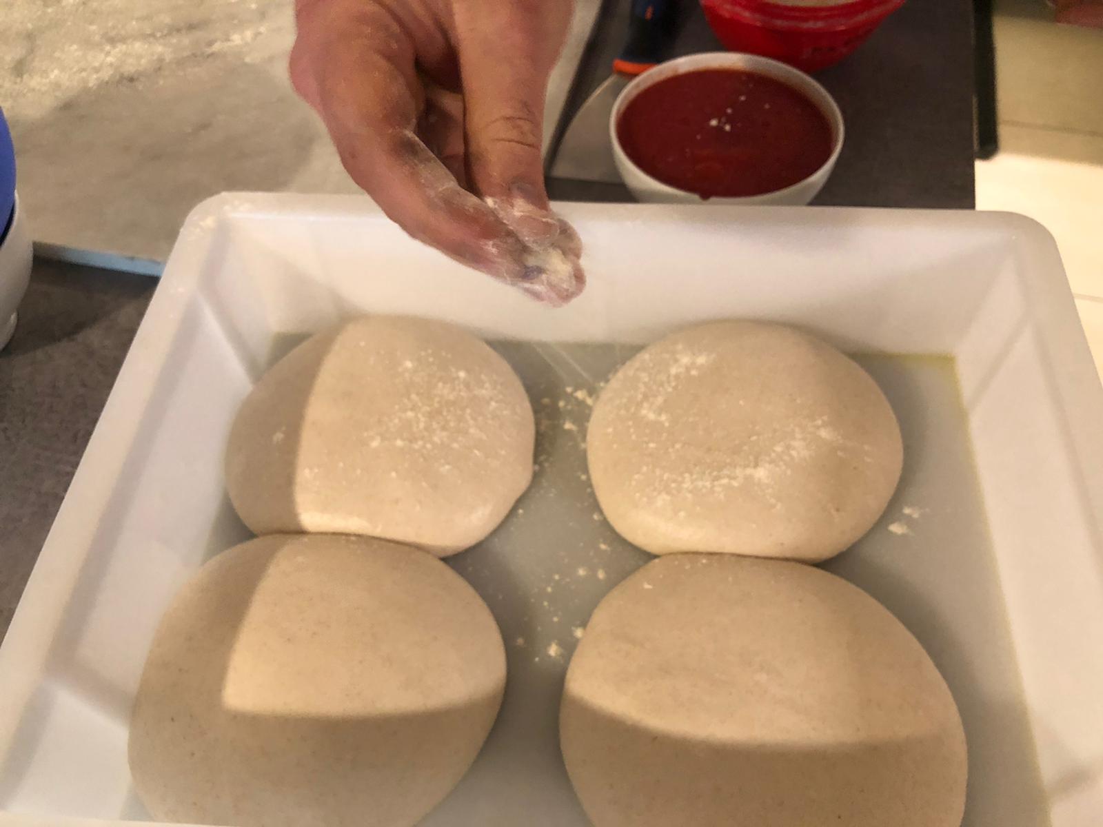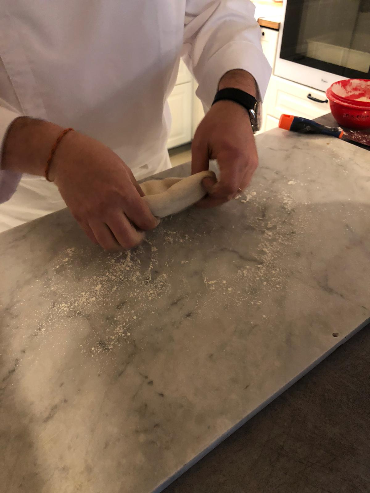Nous ne pouvons pas révéler tous les secrets de Cédric, mais le geste est précis et maîtrisé. Bon comme vous insistez, on vous lâche quelques infos : Cédric fait venir directement d’Italie et de la région de Naples ses tomates, il utilise une farine qu’il sera le seul à utiliser pour le concours, la farine Rockstar, une farine au blé napolitain, végan, sans enzyme ni gluten . Il fait aussi venir son levain de San Fransisco qui a d’ailleurs une véritable histoire.
