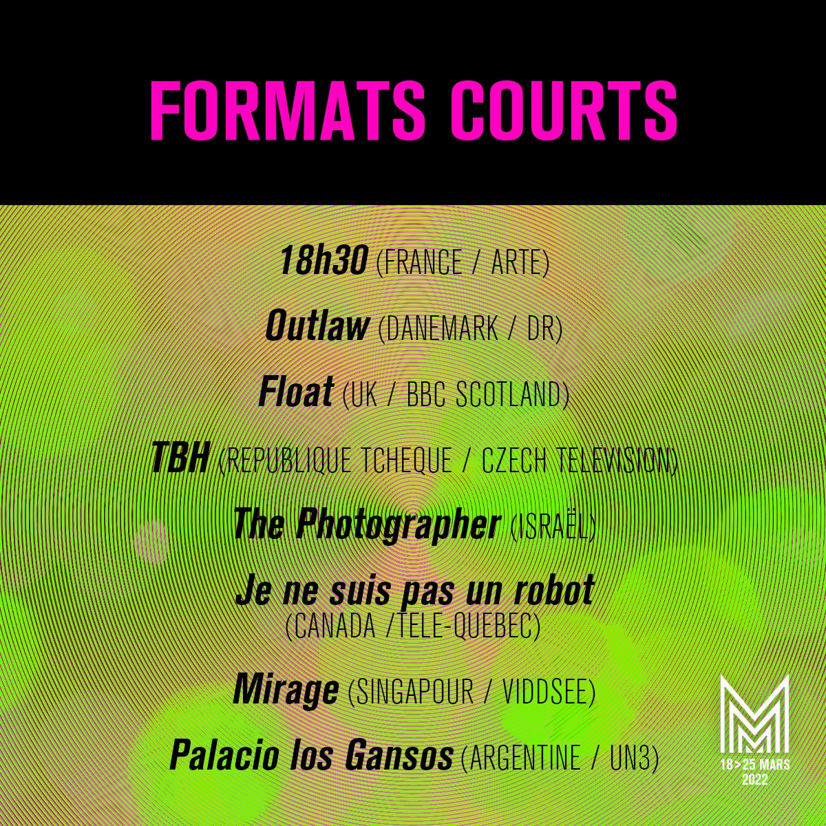 Que ce soit en compétition française, panorama international, compétition format court ou en compétition internationale, préparez vous à passer 7 jours hors du temps.