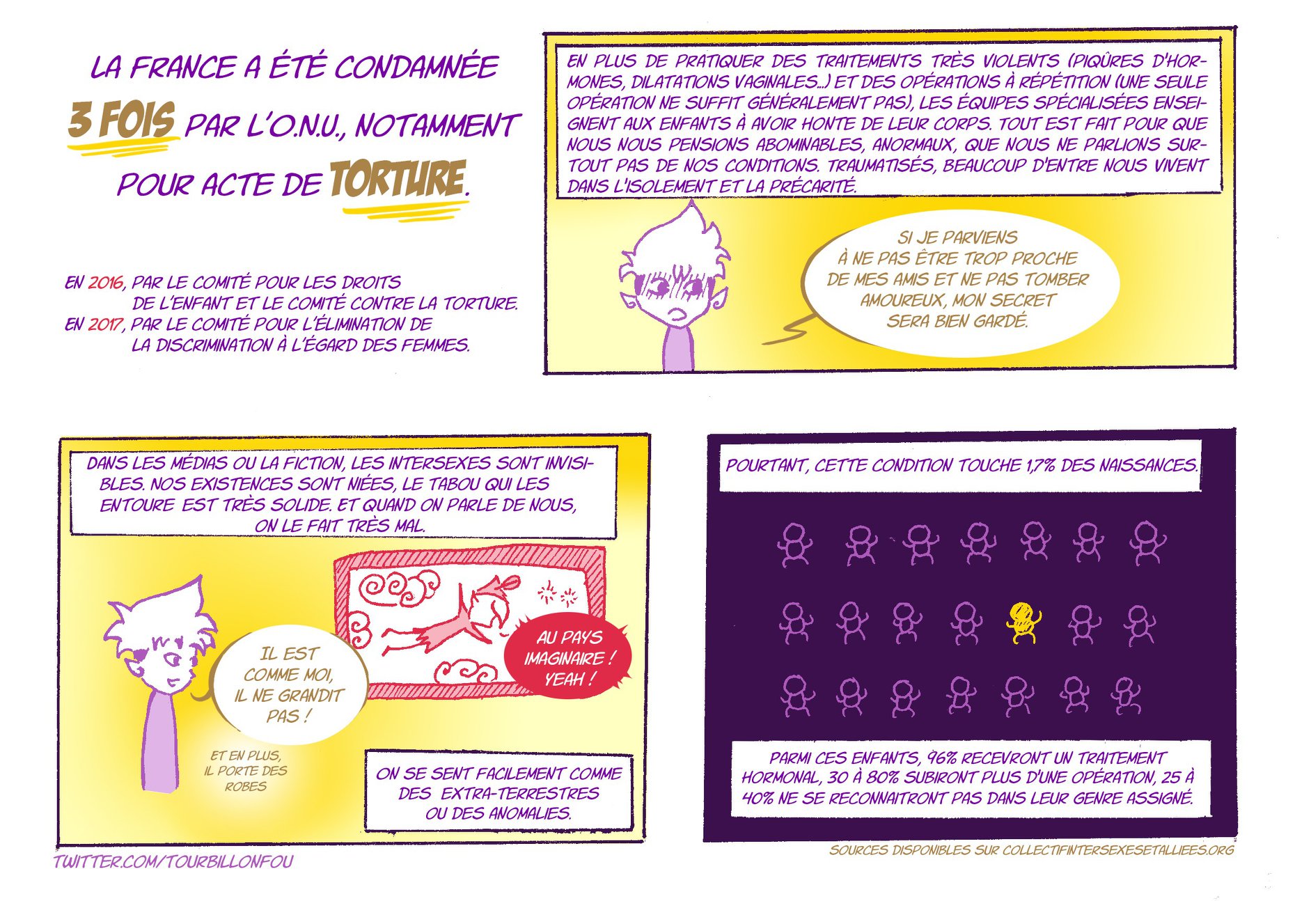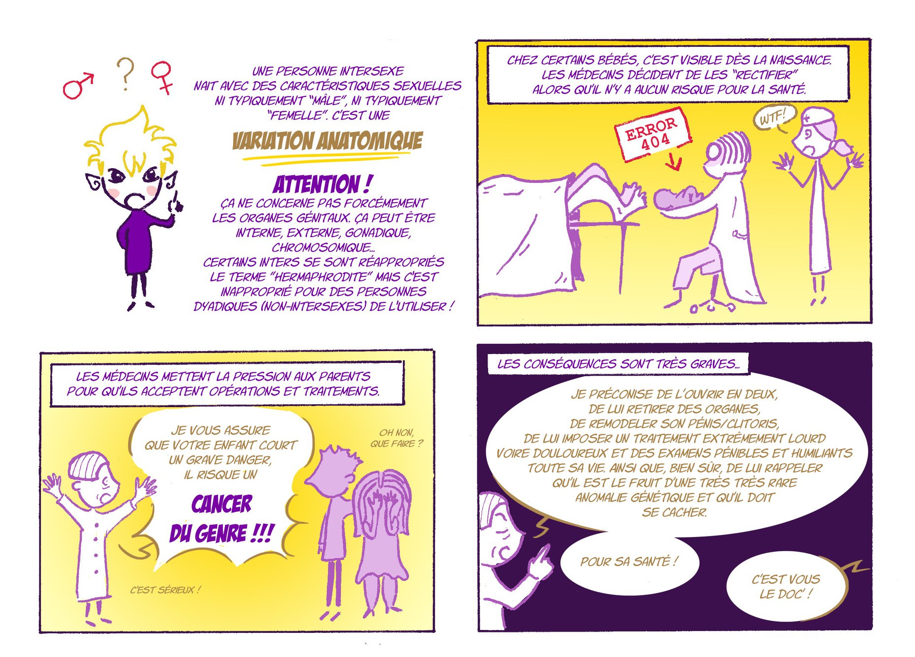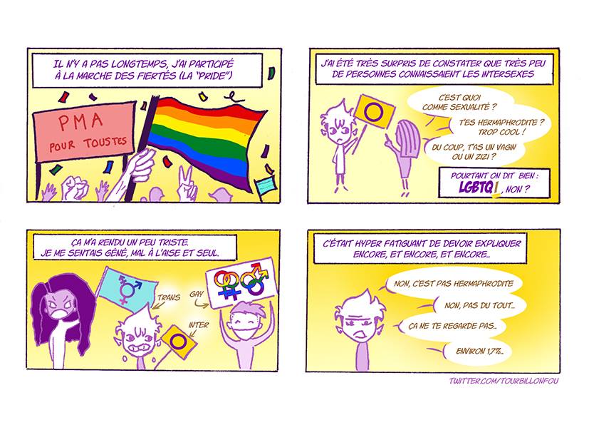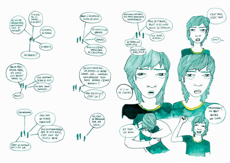 C’est beaucoup plus tard avec le temps que j’ai développé un regard différent dessus. Les personnes intersexuées, c’est un peu la même chose, dans le sens où elles se sentent coupables de quelque chose qu’on ne leur explique pas, si ce n’est sous la forme de diagnostics médicaux. C’est en quelque sorte « leur faute » si elles sont « comme ça » alors que ce n’est pas le cas !