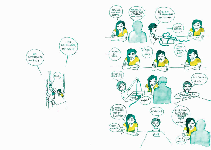 Pour pouvoir illustrer le film tout en sachant que ça apporterait un regard beaucoup plus sérieux, vu que c’est à destination des enfants à l’origine. C’est une façon d’apporter un regard plus léger, plus abordable car au final les témoignages sont très chargés, très durs. Je crois que le contrepoint sous forme de dessin fonctionne assez bien. On a vraiment le regard très dur de la vie d’adulte et en même temps un regard plus enfantin sur le sujet qui fait passer les choses d’une manière tout aussi efficace.