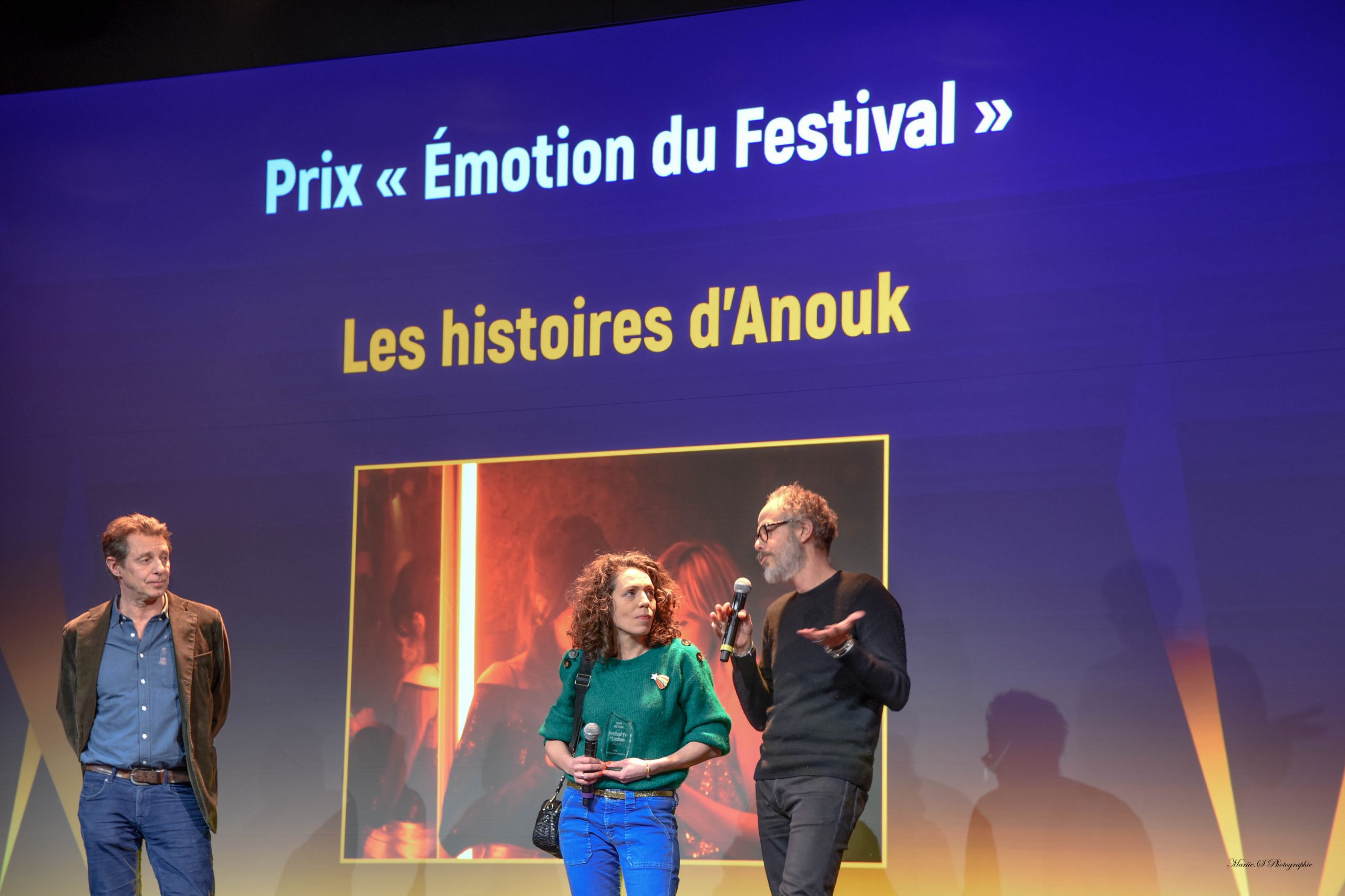 Je me suis retrouvée dans la file d’attente entourée des équipes de films et de séries en compétition. J’ai même fait la connaissance d’Aurore Delplace qui joue dans la série « Un si grand soleil » et de son conjoint Kévin Levy qui est lui dans « Demain nous appartient ». Beaucoup se demandaient s’ils auraient la chance d’obtenir un prix. On a attendu que la salle s’ouvre et je me suis assise au rang presse.