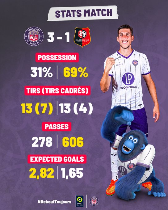 Défi de taille en ce dimanche pour le Toulouse Football Club avec la réception du Stade Rennais. Un duel au sommet, si l’on ose, et si l’on en juge par les performances récentes des deux équipes. L’occasion aussi de confirmer l’excellente forme du moment de nos Violets, seulement interrompue par une courte défaite au Parc des Princes le week end dernier. Et puis l’occasion surtout, d’enfin faire chuter un cador de ce championnat, une antienne qui revient comme une rengaine et qu’il est temps de faire taire. Voilà pour les rimes…