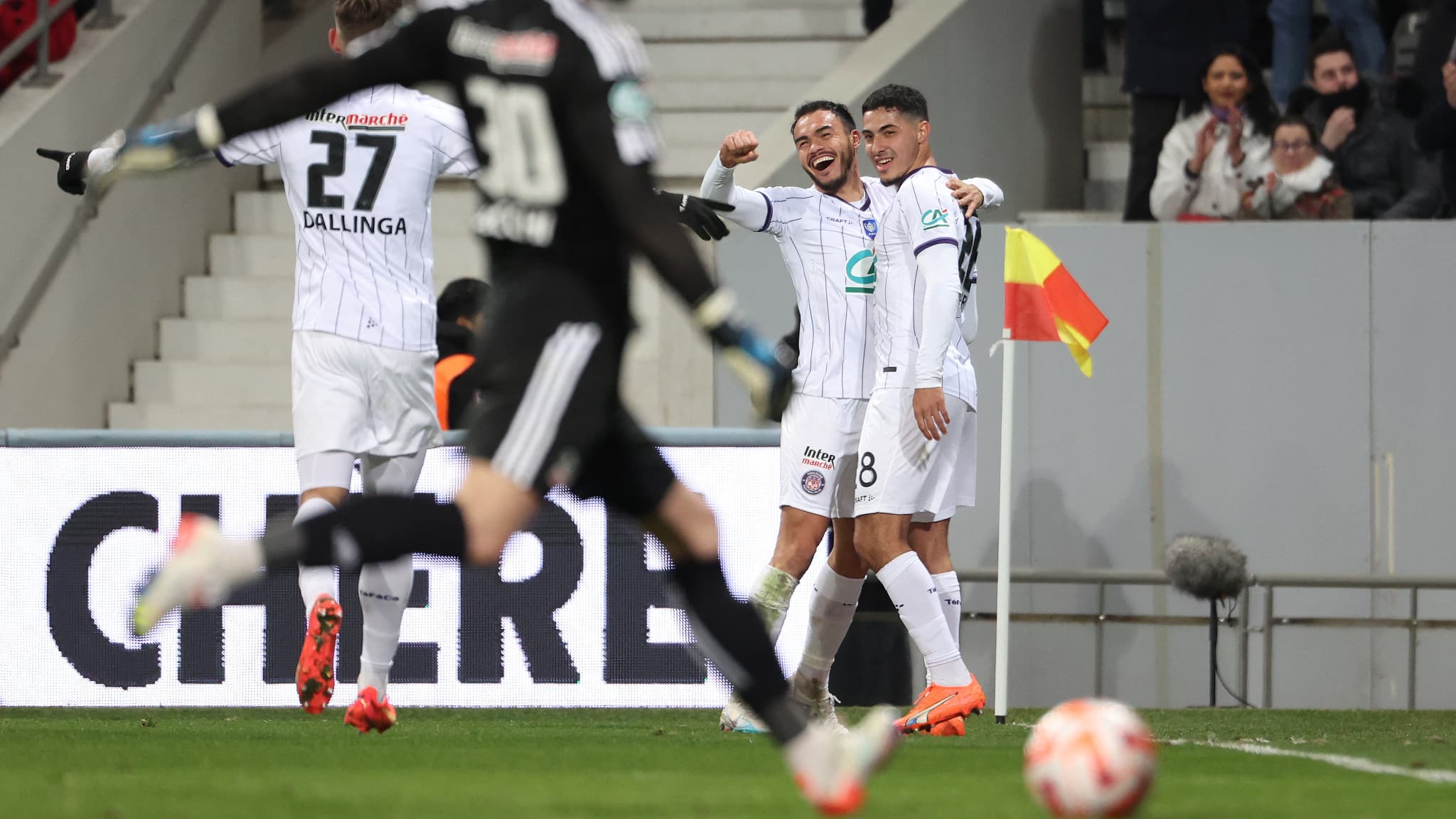 Et c’est sur une action tellement “Ligue 2 2021-2022” que la délivrance allait déjà arriver. Corner de VDB, tête de Nicolaisen et Aboukhlal à la conclusion. A peine le temps de se rasseoir que le Stadium, plein comme un œuf allait vibrer de nouveau sur une attaque rapide conclue de près par un VDB opportuniste. Match déjà plié pouvait on penser ? Pas le temps de convoquer le souvenir de remontadas à notre encontre que Dallinga bien lancé côté droit venait, d’une frappe croisée, sceller à priori définitivement le sort de ce match qui n’aura duré que 12 minutes . De mémoire de supporter, il fallait remonter très loin pour voir trace d ‘une telle entame, qui plus est à ce stade de la compétition. Ceux qui arrivaient au Petit Wembley avec un peu de retard en étaient pour leurs frais !