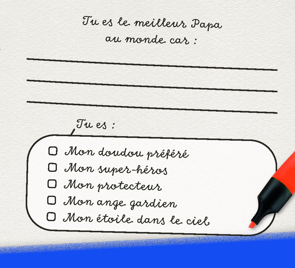 Et ce sont eux qui, par leurs dessins, leurs petits mots, leurs poèmes, leurs dessins vont exploiquer à leurs proches pourquoi ils sont le meilleur papa ou papy, la meilleure maman ou mamie.