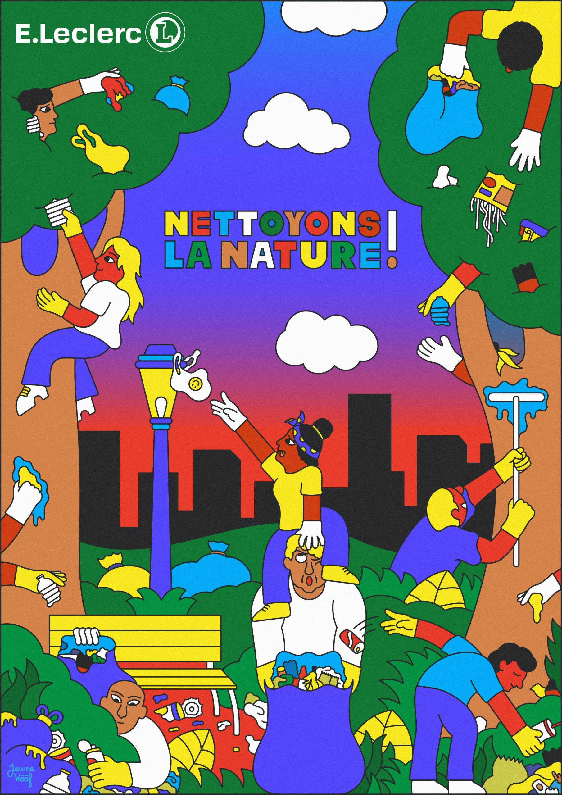 Soucieux de l’environnement et animés par la volonté de le sauvegarder, ce sont des centaines de milliers de volontaires qui se mobilisent pour nettoyer de leurs déchets des sites urbains et naturels. Pour la deuxième année consécutive, l’opération s’appuie sur l’inspiration et la créativité de Sébastien Pastor pour illustrer son propos. L’auteur a produit 6 visuels représentant des scènes imagées et colorées de nettoyage collectif. 28 ans de mobilisation pour la préservation de l’environnement.