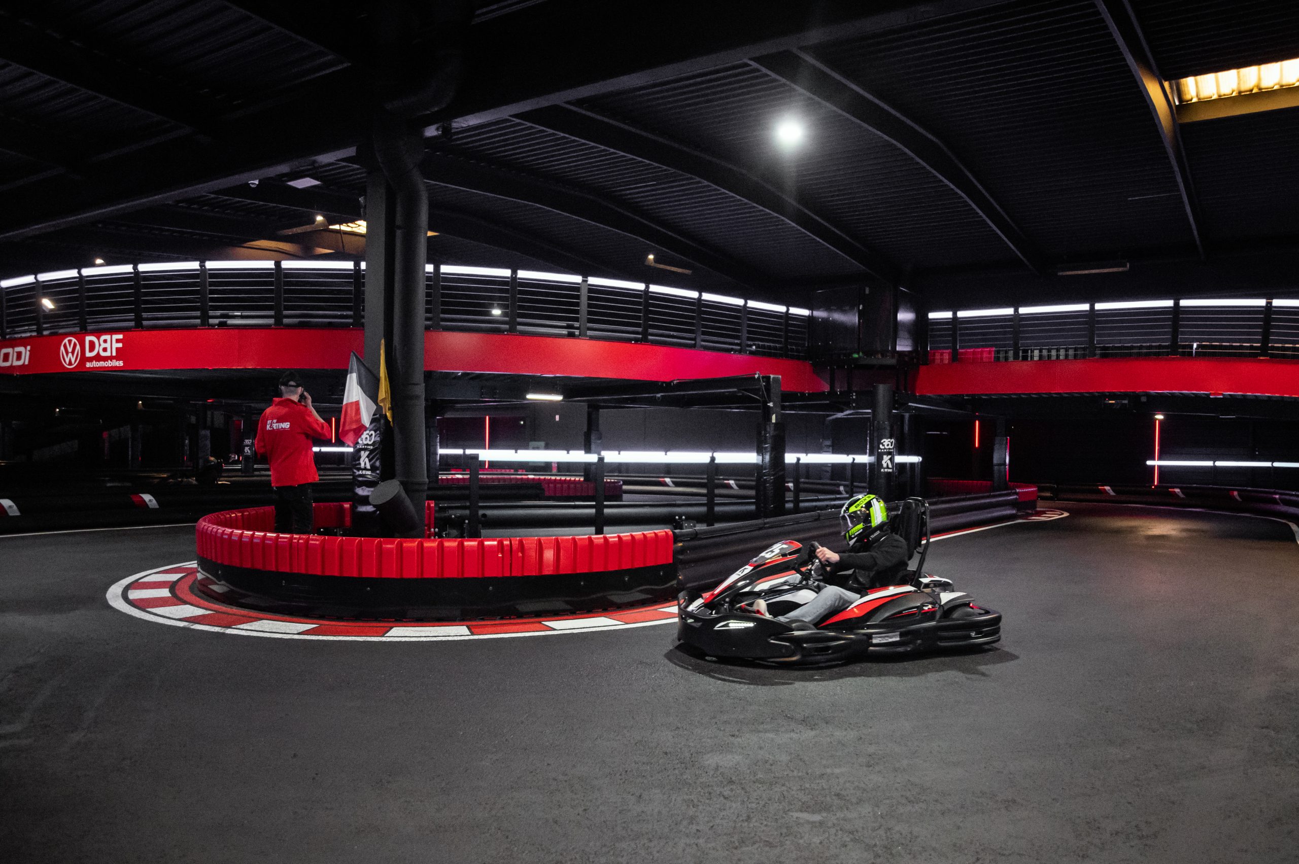La transformation ne s’arrête pas aux machines. La piste indoor a été entièrement refaite avec un tracé redessiné pour plus de fluidité et de technicité. Les pilotes découvrent désormais des parties surélevées et un tunnel modernisé, renforçant l’immersion à chaque tour de piste.