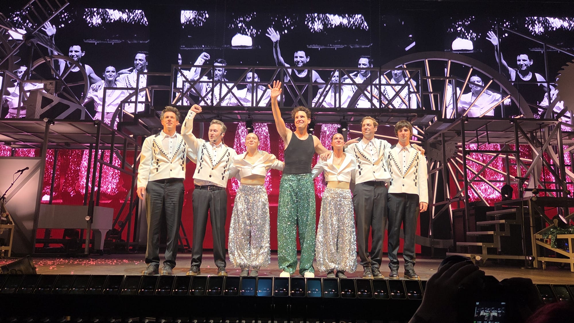 Après un court interlude, et un changement de costume, on le découvre en haut du décor, vêtu de rose. Quel serait meilleur endroit pour parler de la Lollipop girl rose … que la Ville Rose ? C’est également l’occasion de faire un clin d’œil aux voisins d’Albi et du Gers, avant de repartir de plus belle vers le club du Butterfly Lounge pour faire la fête sur une version de Big Girl chantée en sautant dans la fosse et en escaladant les grilles vers les gradins. Le public a aussi préparé quelques surprises : des ballons et des cœurs forment une marée colorée d’amour et de légèreté. Et comme si l’amour n’avait pas été chanté assez fort, un hyper-mégaphone à confettis fait son apparition en plein milieu de la scène. Tout le monde chante à tue-tête les couleurs de Grace Kelly, puis Mika fait danser une dernière fois le public avec Elle Me Dit avant de terminer sur un Love Today déchainé, le bouquet final du show.